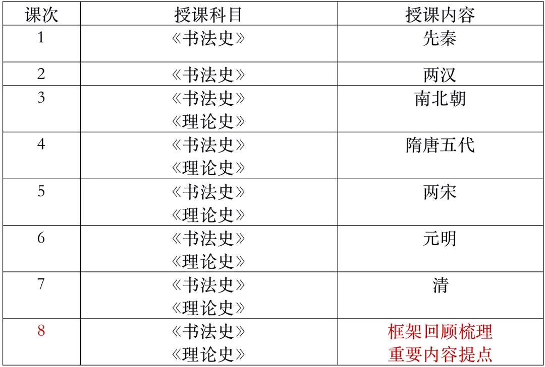 //:课次根据实际上课情况会有调整(25届一阶段课次达30余次),公众号“公示课表”不做毫无技术含量且章节繁细的排示,大体如《中国书法史七卷本》章节归置知识点,自行了解。