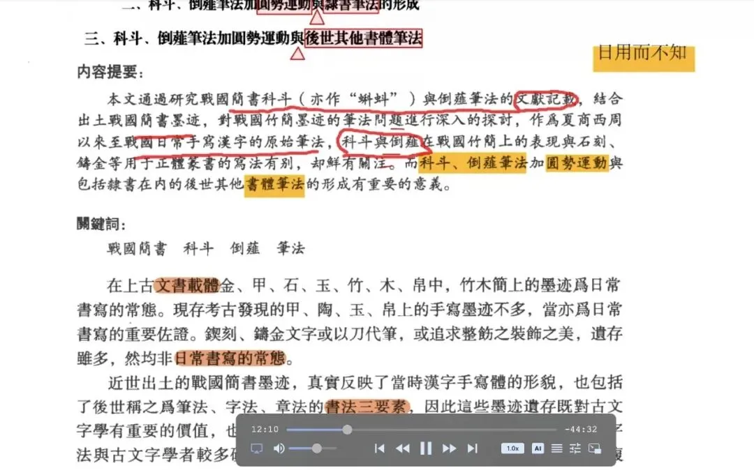 2. 认知书法史论在各时代的内容,依靠笔记进行分类、串联和总结 。