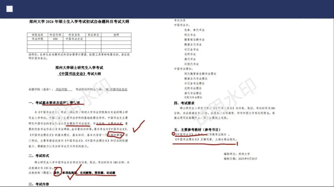 G同学 郑州大学书法考研初试415分(专硕组初试、复试第1)