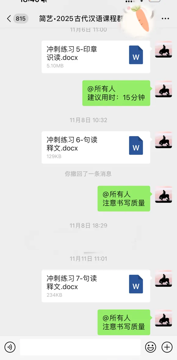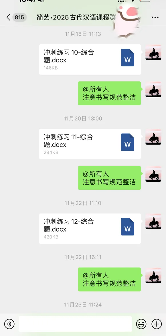 //:课程总体上按照知识板块在历年真题中的重要程度降序排列,首先解决应用型考点,再理解记忆型考点。本阶段任务最为艰巨,素材积累较为丰富、作业较为密集。我们将在这一阶段的古诗写作与题跋写作训练中为学员一对一打造只属于自己的基础版本,并指导学员将训练成果直接应用到最终的考试实践中!课次会视具体情况灵活调整(其他阶段同理),学员群会根据特定阶段发放相应的辅助配套资料。