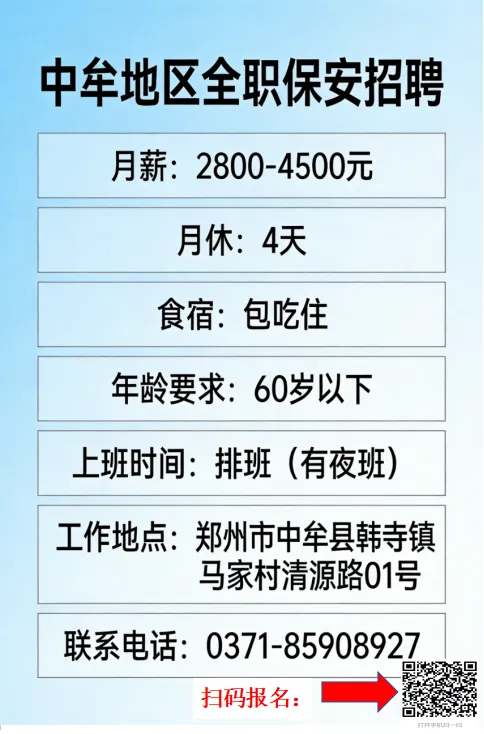 河南黄锦物业开年招聘,现有多个保洁、洗碗、维修、保安岗位招聘,所有岗位均享受薪资准时、三节福利、免费工装!欢迎推荐、自荐、转发: