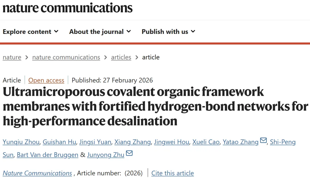 本研究针对高性能海水淡化需求,提出了一种氢键强化策略来制备超微孔、高结晶性共价有机框架(COF)膜。