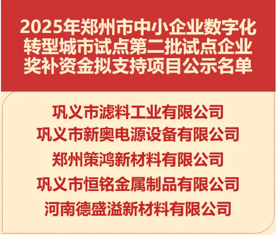 我区5家企业入选2025年郑州市中小企业数字化转型城市试点第二批试点企业奖补资金拟支持项目名单