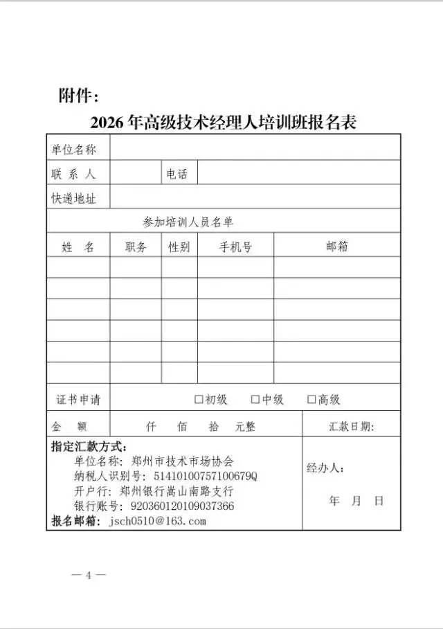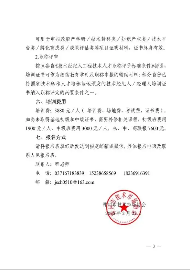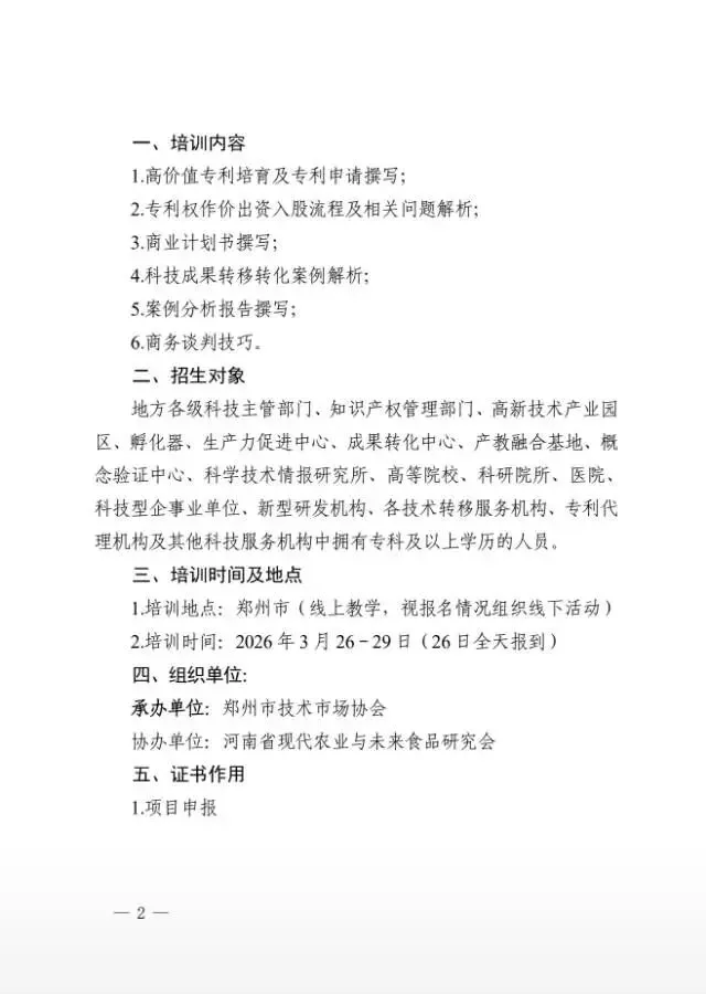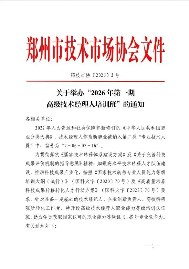 >关于郑州市技术市场协会举办“2026年第一期高级技术经理人培训班”的通知!