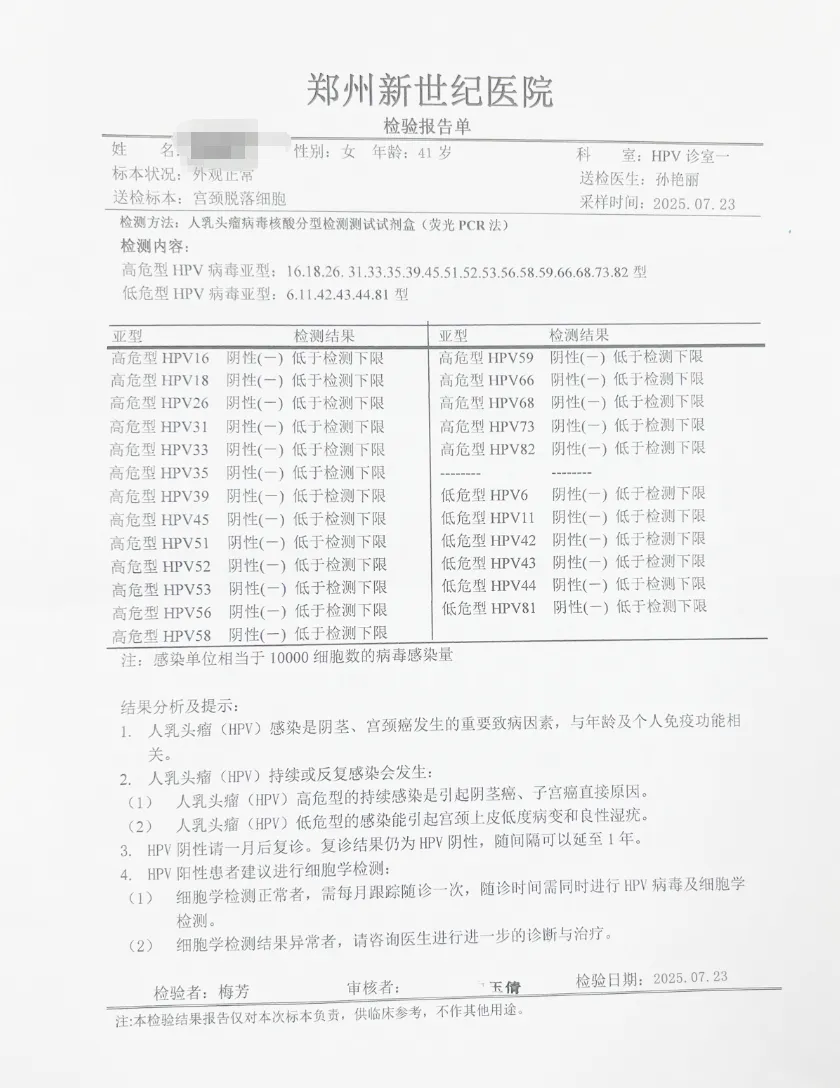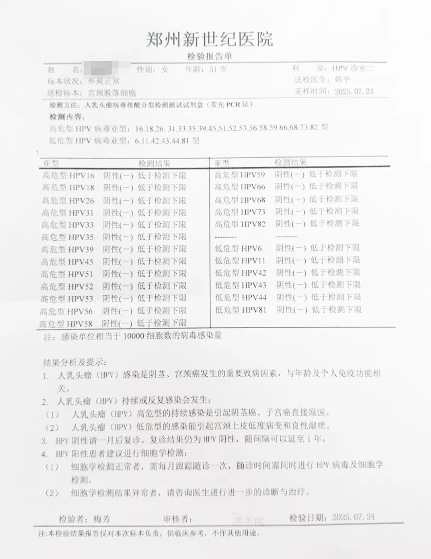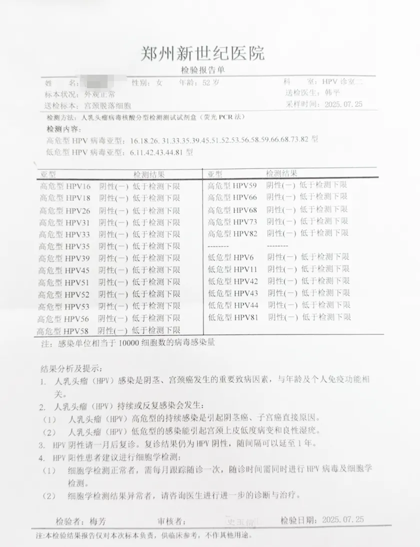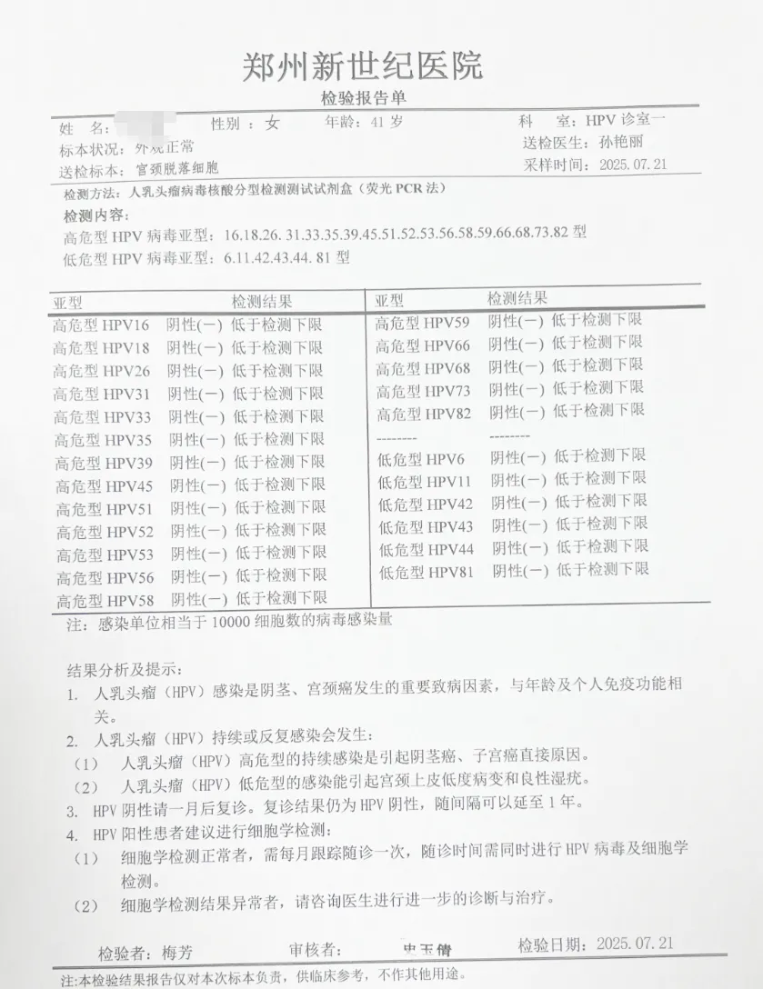 ◉ 42人单纯高危型HPV感染者,均通过针对性治疗,在宫颈、阴道及外阴部位均检测出HPV转阴。