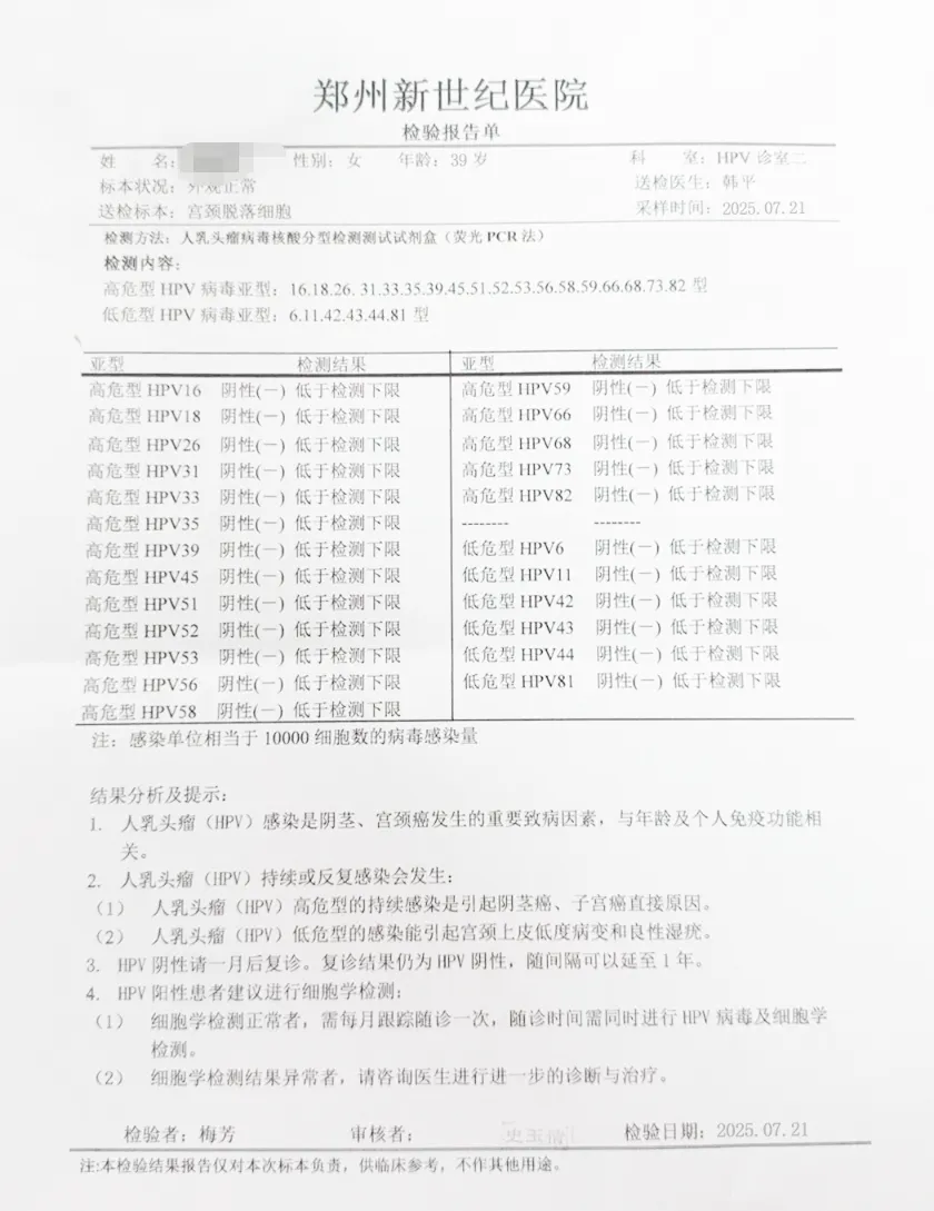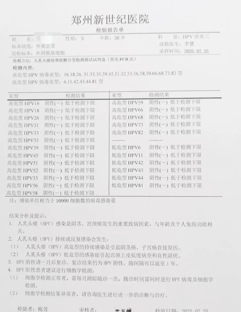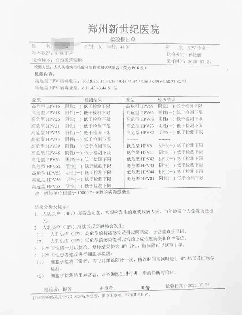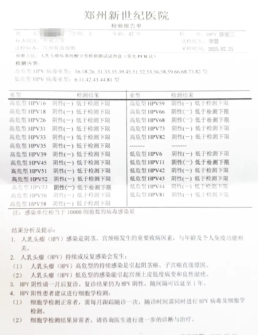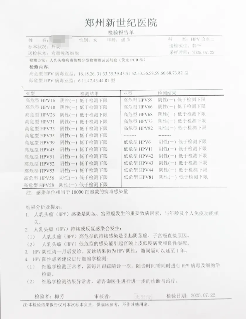 ◉ 42人单纯高危型HPV感染者,均通过针对性治疗,在宫颈、阴道及外阴部位均检测出HPV转阴。