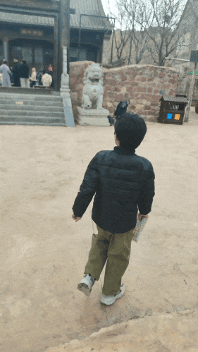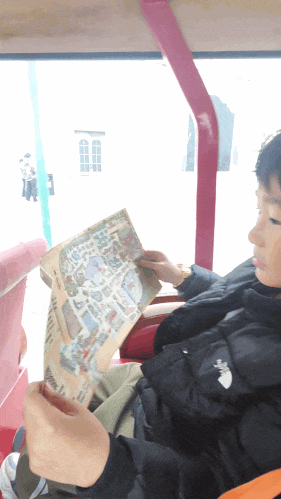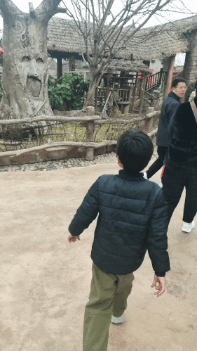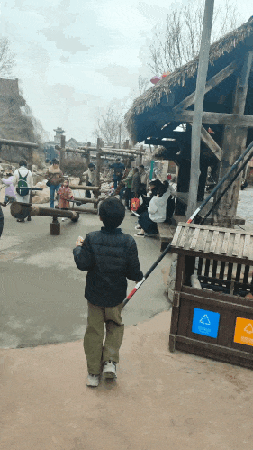 住宿推荐小镇里面的客栈,有包含两张两天无限次入园的门票🎫的那种,再补一张孩子的门票就可以,免费停车🅿️,登记后有复古老爷车直接拉到客栈门口。 安顿好就可以出去溜达了👣,园区是民国风,不同区域有各种演出,可以按时间去看。 地图🗺️上一眼就看中了山谷里的游乐场,路过村口小学堂,正在玩成语接龙。