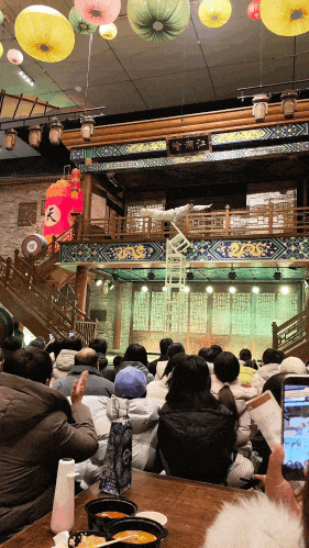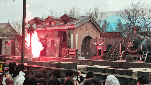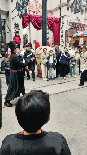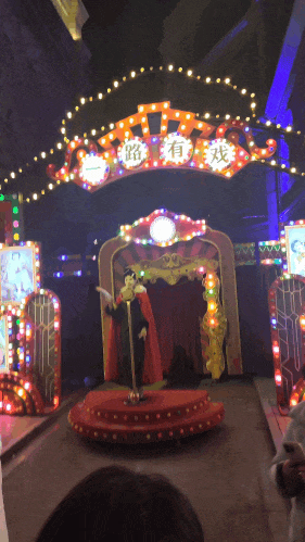 玩过一遍后出来过桥,机械特洛伊雕塑🗿的另一侧还有一个小游乐场😁~ 旁边还有几个滋水井~想凑过去看一眼👀的话要做好洗脸的准备😏 继续向前是会说话的老树🌲,想起了冰与火之歌里面的鱼梁木~ 先去这个时光匣子里面看看👀~这条大街上有商铺,也有可以各种拍照📸的场所 进门就是一个放大的机械表盘~告诉你为什么机械表走辣么准🧐 有许多老物件,落地扇,座钟🕰️,放着83版射雕的老电视📺~ 有趣人类派对开始了🎊,这个每天有四场,先是十分钟的表演。 可以和花袄熊🐻合影~然后就是各种玩游戏赚法币了~感觉最容易的是听小提琴🎻和萨克斯🎷猜歌名,每次可以赚20块,旁边问答一次才5块,还可以去各种比大小,玩轮盘啥的,注意十赌九输😂~ 晚上七点半,园区主要的演出“一路有戏”开始,时长一个小时,分为四幕,在园区四个不同的地点依次上演😍。 第一幕结束后大幕撤下,中央大街瞬间变成80年前夜上海的感觉🤩,各种卖报的、卖药的、乞讨的、唱歌的NPC和游客混在一起,带你一秒穿越~ 因为刚看完只有河南各种话剧,所以觉得这个剧的剧情比较水,场面还是不错的,第四幕最后还放了烟花🎆~ 第二天上午十点开园,十一点有一场“刺杀行动”的演出可以看👀~ 德化街上,两边的民众举着横幅,挥舞小旗,欢迎冯将军前来视察🎉~ 不料突然一声枪响🔫,斧头帮在二楼的狙击手开始刺杀,枪战迅速暴发~ 最终凶手被捉拿,冯将军宣布郑县改为郑州,群众欢呼结束🎊~ 12点有趣人类派对🎊又开始了,警察和乞丐也有手艺~还会随机把一位观众拉到中间,有法币~ 中午可以去最东边的京城往事,边吃饭边看杂技表演😁~ 一点半在观音堂火车站🚉附近,有“谍战风云”可以看~