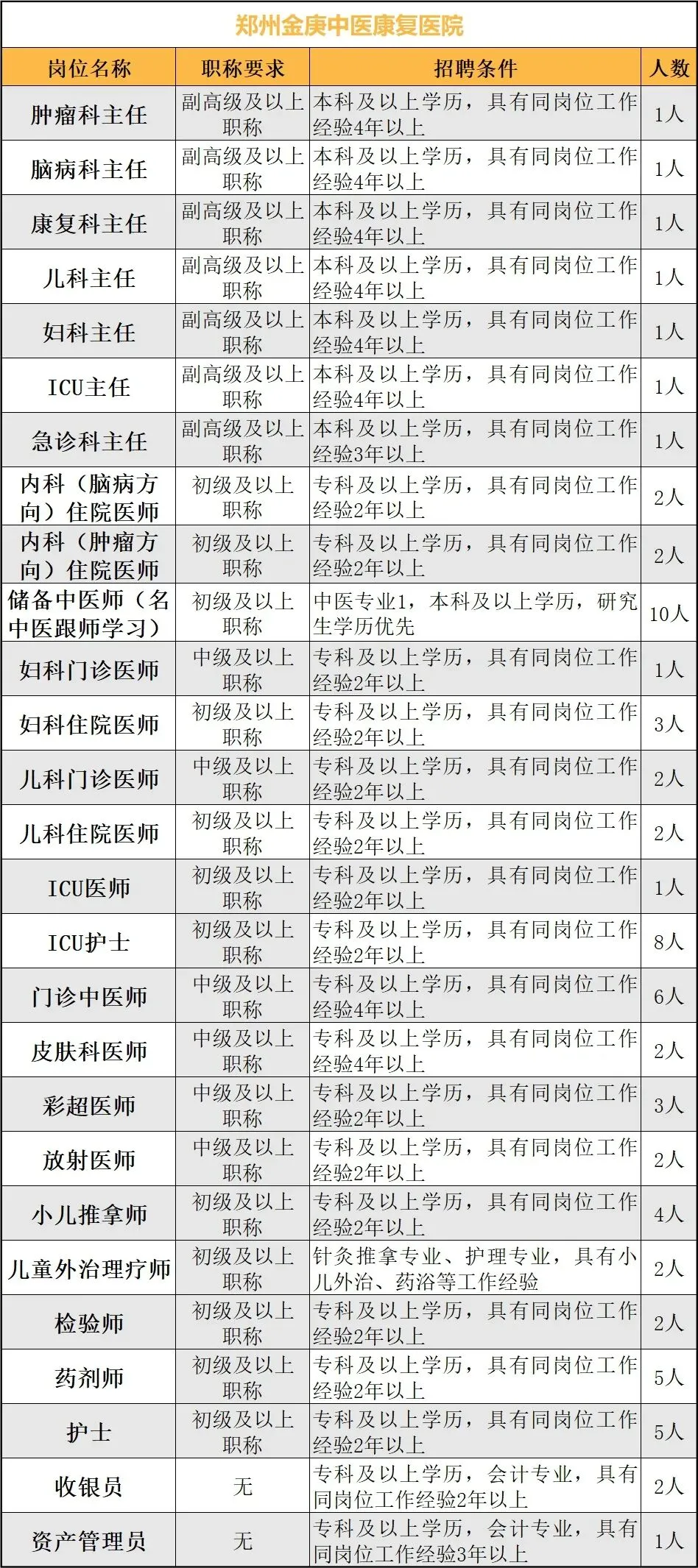 郑州金庚中医康复医院暨象湖南路社区卫生服务中心2024年招聘公告