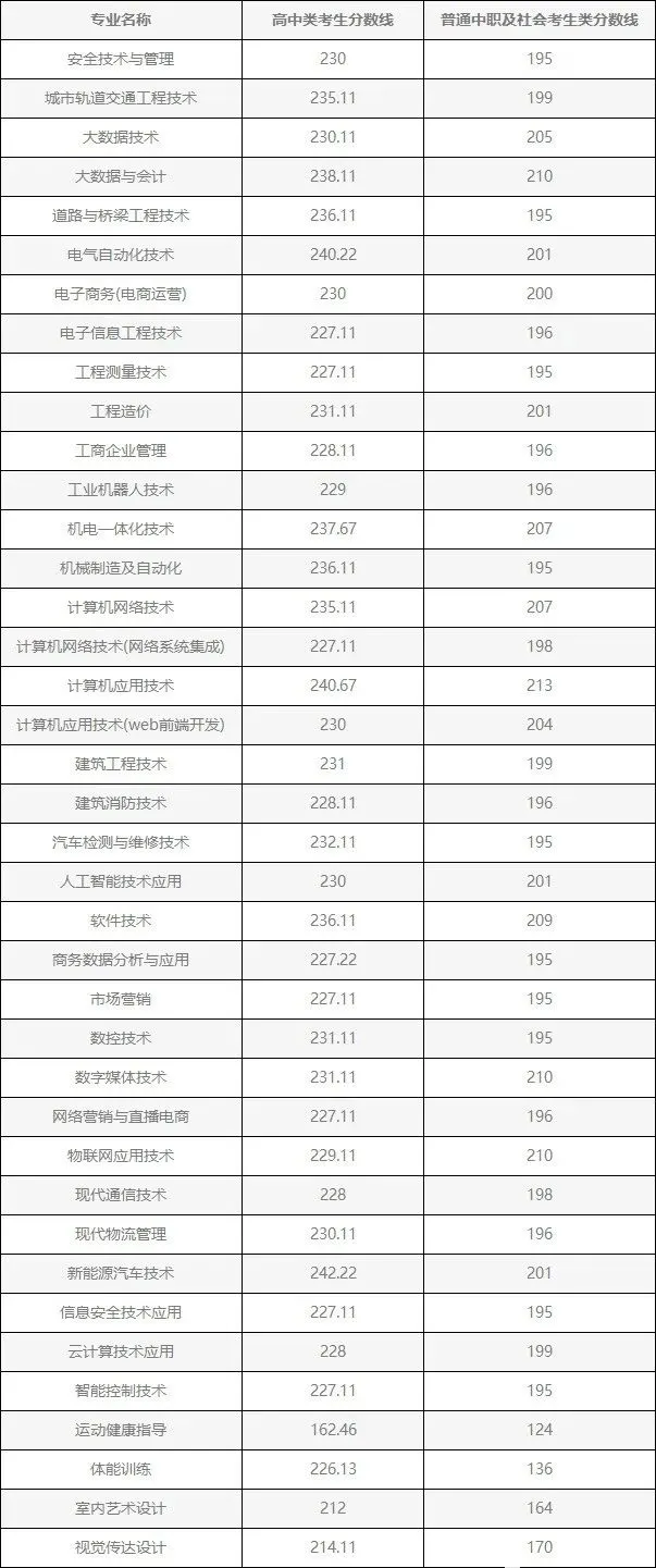 普通高中类最低分数线227.11分,普通中职及社会考生类最低分数线195分,艺术类、体育类专业最低分数线以实际录取分数线为准。