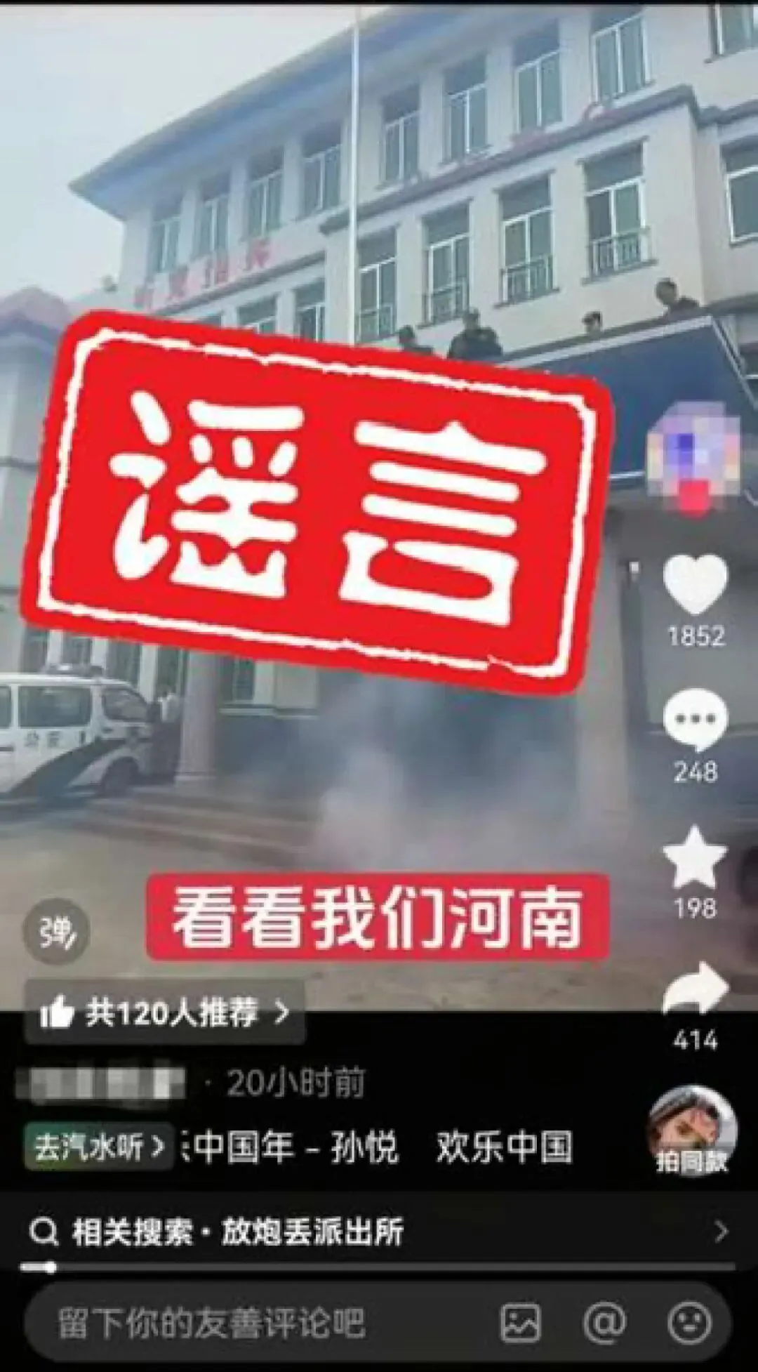 案例一:郑州任某杰为博取关注,将网上燃放烟花爆竹的视频拼凑剪辑、旧闻新发,配以“看看我们河南”的文字对外发布,虚构燃放时间、地点,误导公众认知,造成不良影响。经公安机关调查,任某杰对违法行为供认不讳,公安机关已依法对其处以行政处罚。