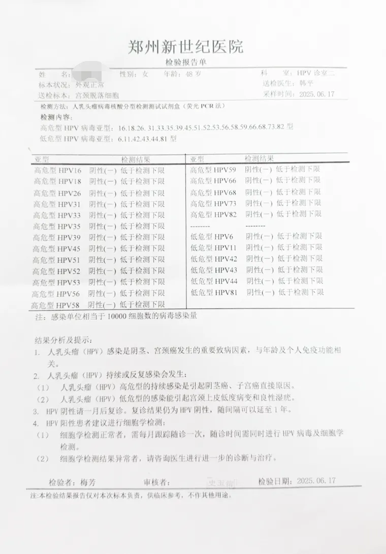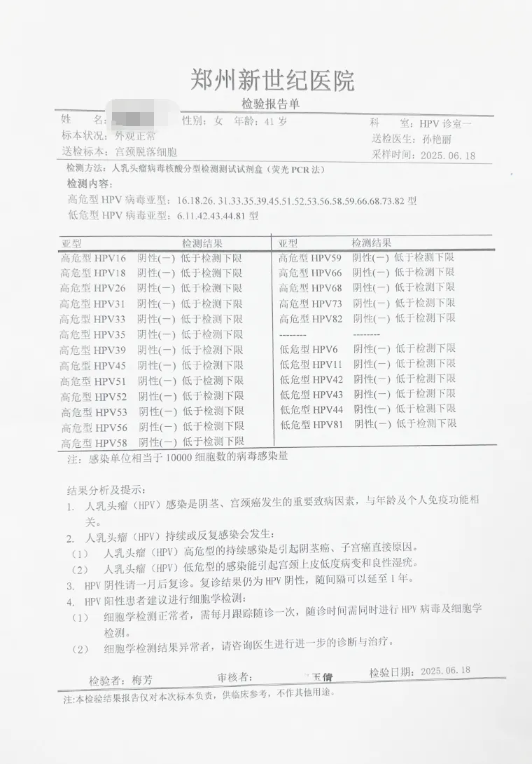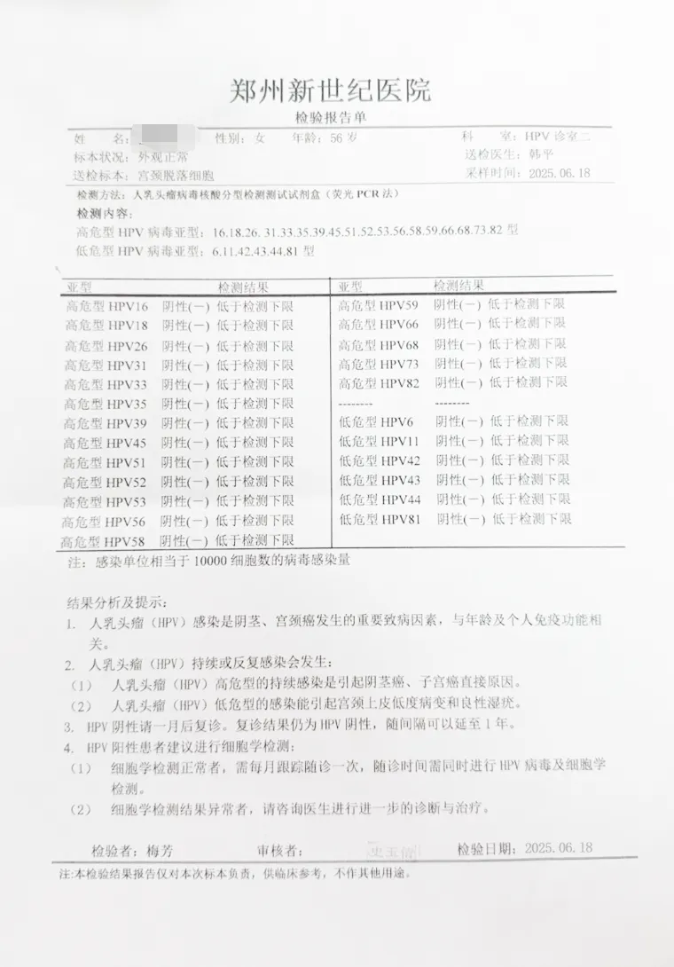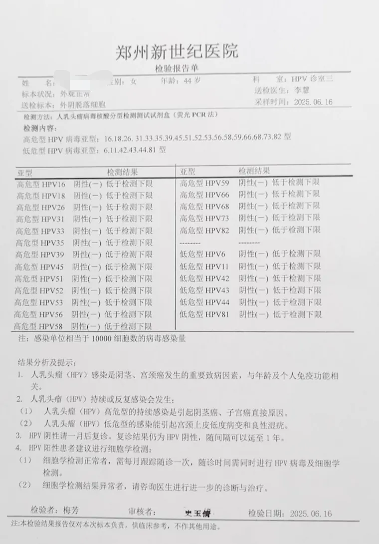 ◉ 46人单纯高危型HPV感染者,均通过针对性治疗,在宫颈、阴道及外阴部位均检测HPV转阴。
