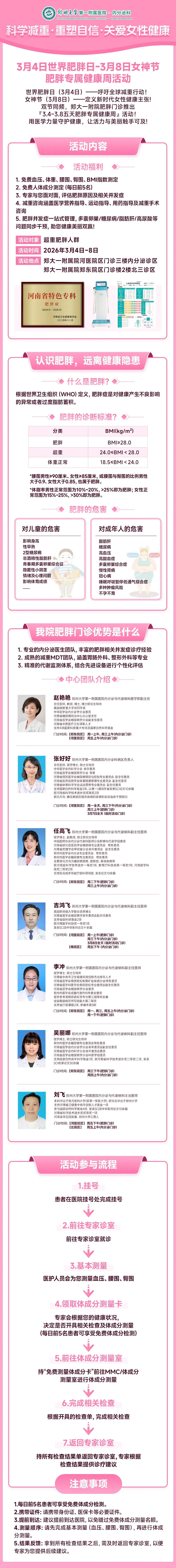 >郑州大学第一附属医院内分泌与代谢病医学部3.4–3.8 五天肥胖健康周活动邀您“以健康之名,赴轻盈之约”