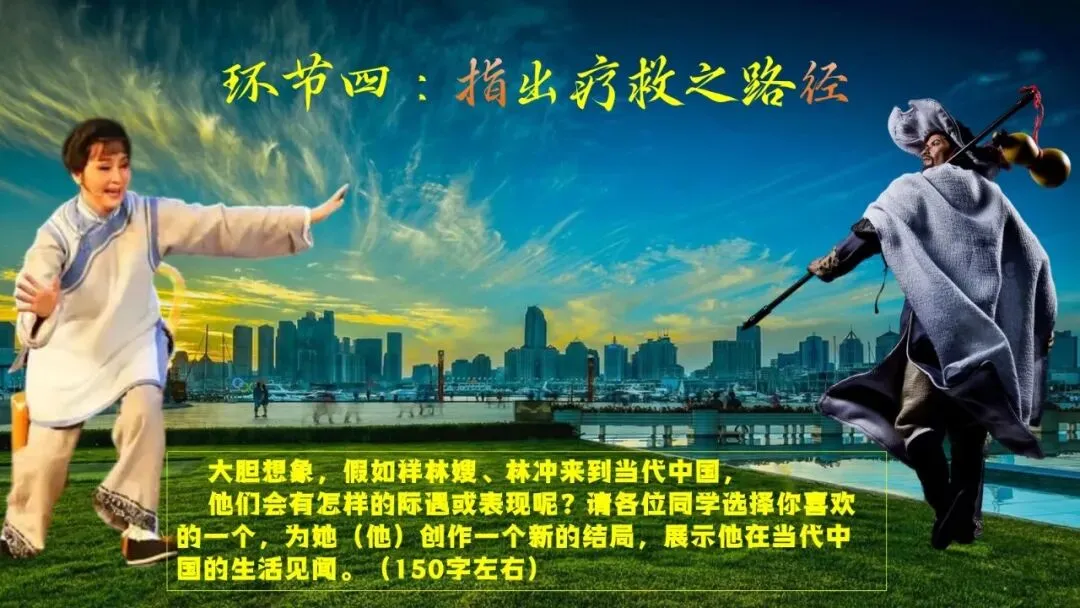 请同学们大胆想象,假如祥林嫂、林冲来到当代中国,他们会有怎样的际遇或表现呢?请各位同学选择你喜欢的一个,为她(他)创作一个新的结局,展示他在当代中国的生活见闻。(150字左右)
