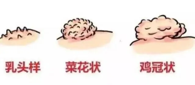 发展变化:随着时间推移,这些小丘疹会逐渐增多、增大,长成乳头样、菜花样或者鸡冠样的赘生物,表面可能还比较粗糙,有的呈灰白色、粉红色或污灰色。而且疣体一般比较湿润,碰一下还容易出血。