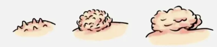 1.生殖器疣:外阴、阴道、宫颈或肛门周围出现的小肉粒或菜花状赘生物,颜色多为肤色或浅褐色,可能伴有轻微瘙痒或不适感。
