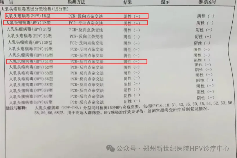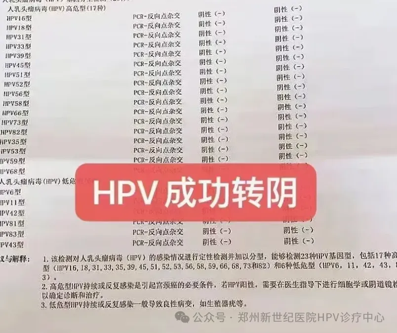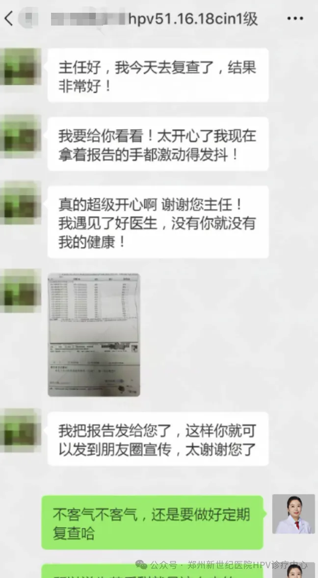 经过郑州新世纪医院HPV诊疗中心的孙艳丽主任为她定制的清毒治疗后,复查结果显示,她的HPV病毒已成功转阴!这一喜讯让刘女士兴奋不已,她特地通过屏幕与我分享了这份难以言表的喜悦。她感慨万分,觉得自己无比幸运,能够在这里遇到医术高超的好医生。