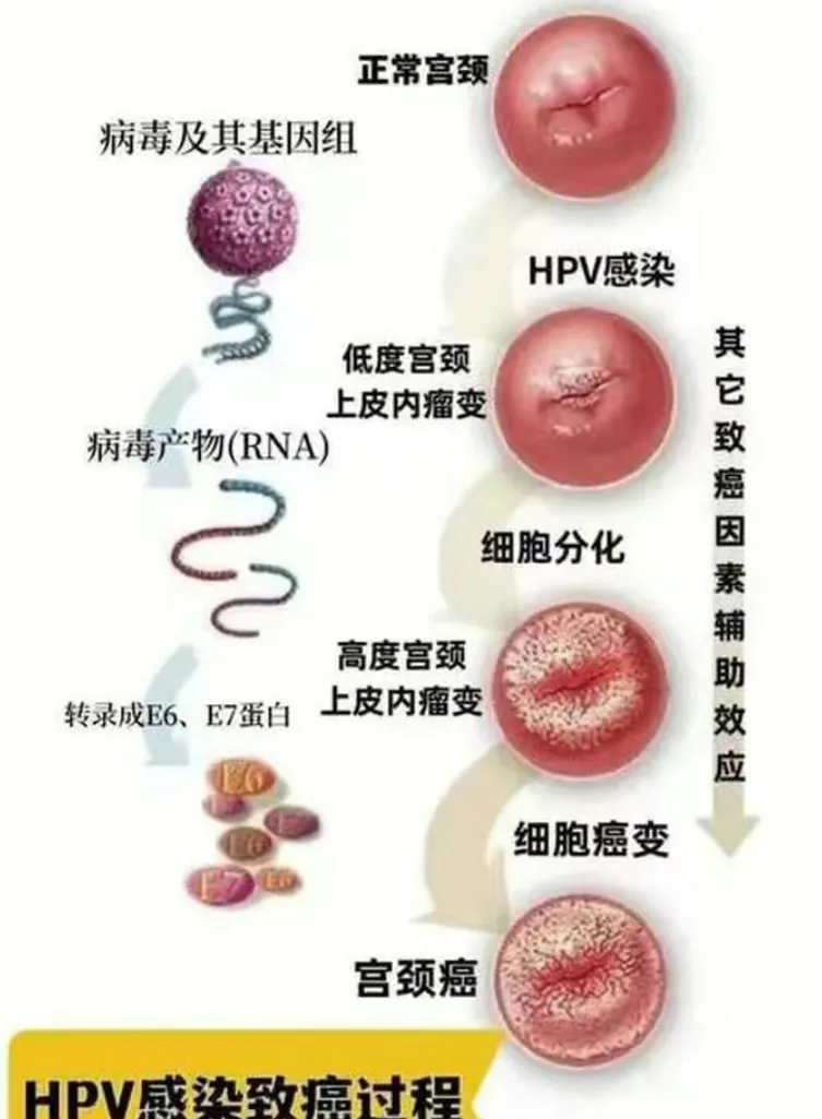 高危型 HPV(如 HPV16、HPV18、HPV31、HPV33 等)则与宫颈癌、肛门癌等恶性肿瘤的发生密切相关。如果感染了高危型 HPV 且持续不转阴,就有可能导致宫颈上皮内瘤变(CIN),从 CIN1 逐渐发展到 CIN2、CIN3,最后可能发展成宫颈癌。例如,HPV16 和 HPV18 这两种亚型导致了约 70% 的宫颈癌病例。所以,感染的 HPV 是高危型还是低危型是判断病情轻重的首要因素。