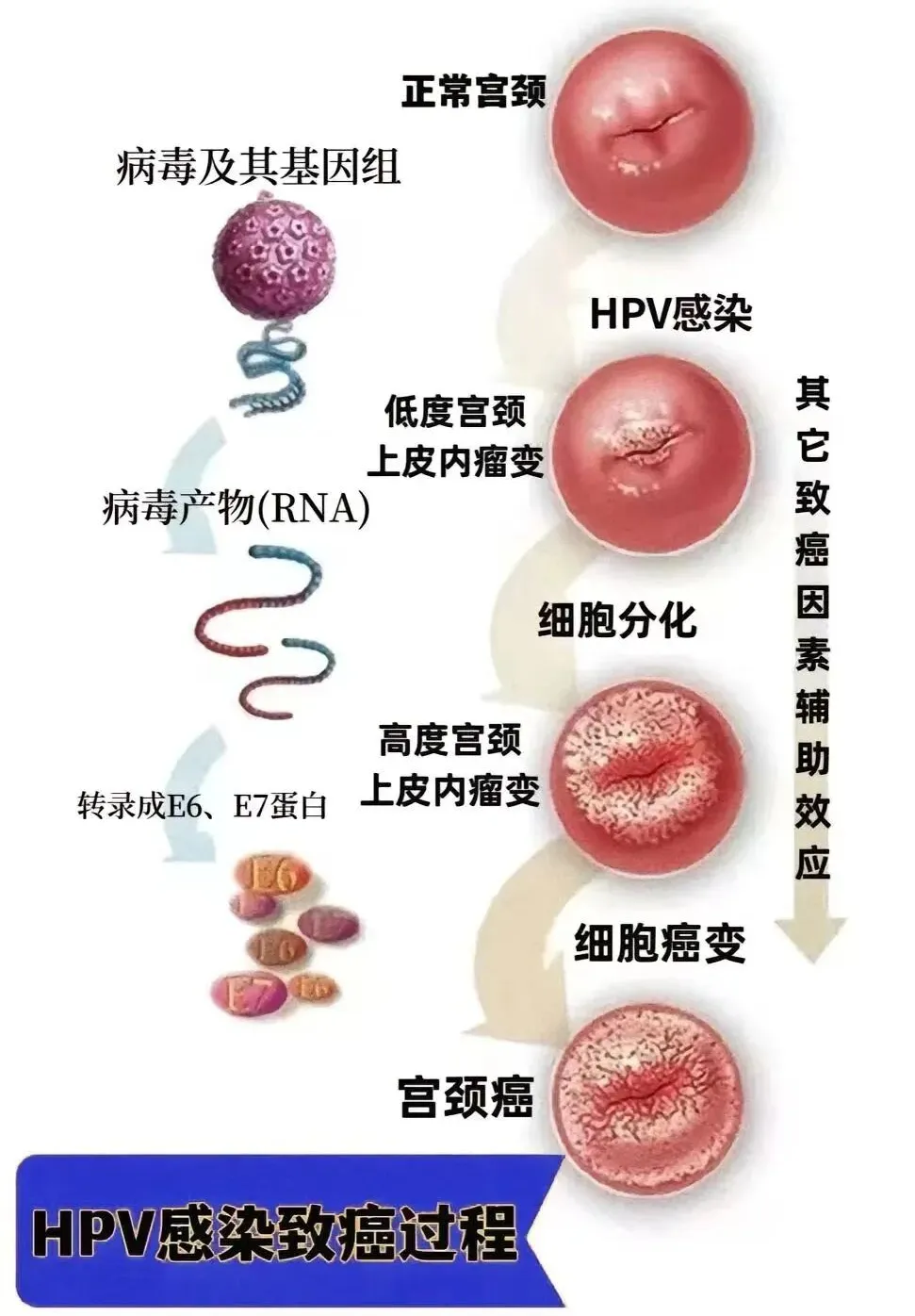 高危型 HPV(如 16、18、52、58 型等)持续感染是宫颈癌的主要诱因,约99.7% 的宫颈癌与 HPV 感染相关。但需要明确:感染 HPV≠患癌!部分持续感染才会逐渐发展为宫颈上皮内瘤变(CIN),最终演变为癌症。因此,定期筛查(HPV+TCT 联合检查)是预防宫颈癌的关键。