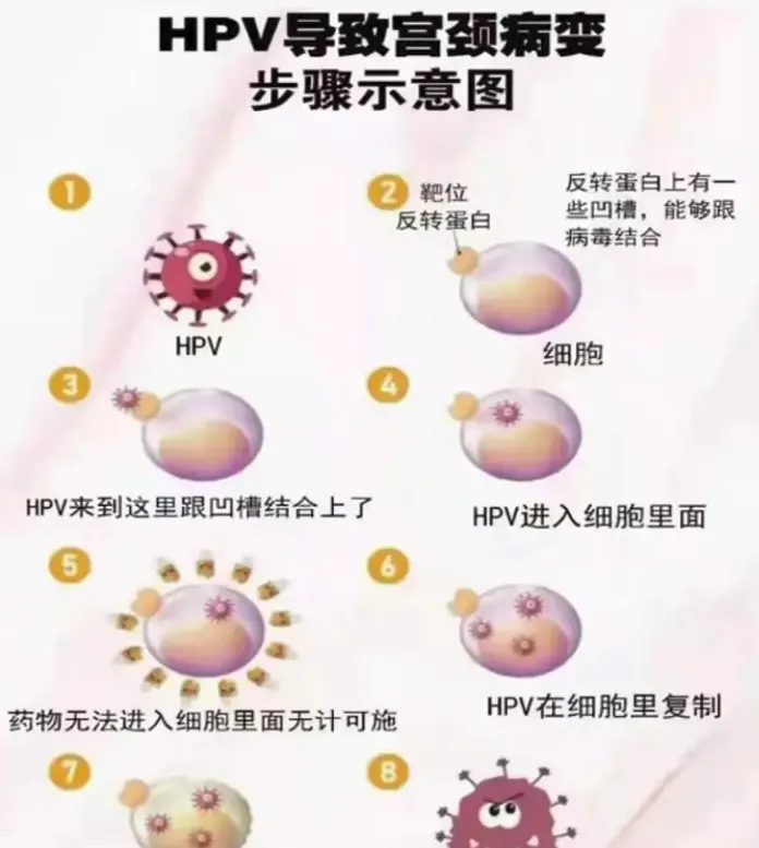 当女性感染了HPV时,病毒会附着在宫颈上皮细胞上,并利用这些细胞进行复制。病毒的基因组会整合到宿主细胞的DNA中,随着病毒的复制周期,受感染的细胞数量会逐渐增多,这一过程往往悄无声息,不易被察觉。