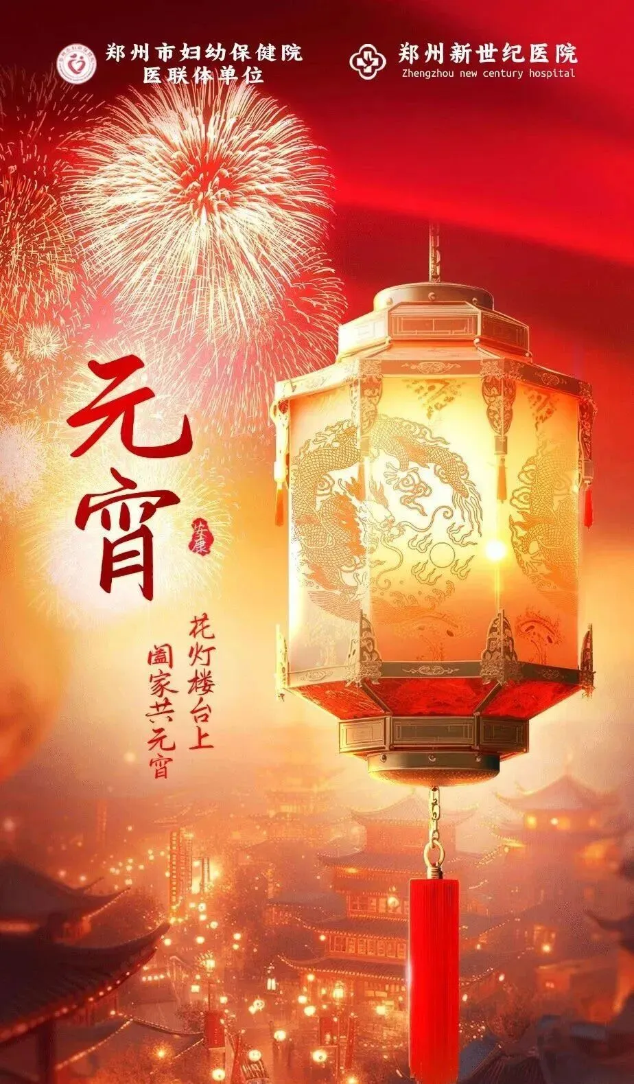 在这个充满欢笑与温馨的节日里,郑州新世纪医院全体职工恭祝大家元宵节快乐,阖家幸福,身体健康!