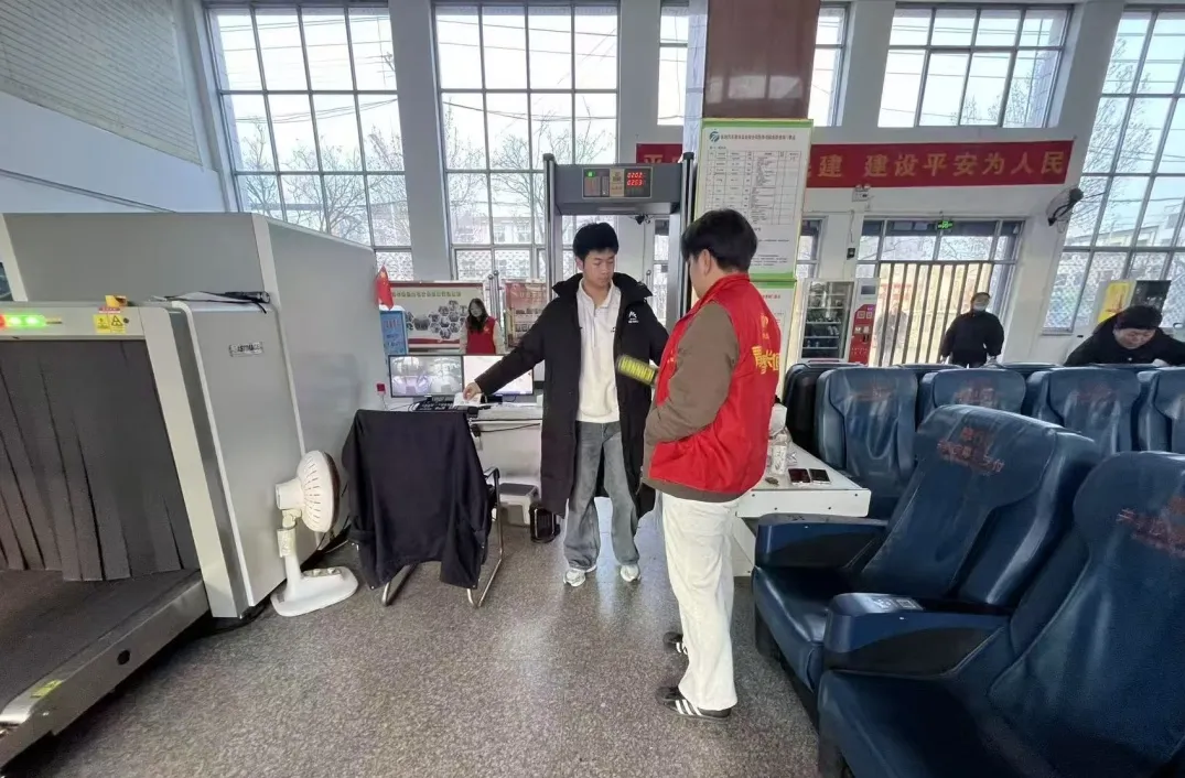 团队成员通过网络报名,主动参与当地汽车站春运“暖冬行动”志愿服务。春运客流高峰期间,志愿者们积极分担场站工作压力,协助做好候车区域环境卫生清洁、公共环境消杀整理;配合工作人员开展安全检查、维护现场秩序,耐心引导旅客有序通过安检;同时为过往旅客提供路线咨询、重点旅客帮扶等便民服务,用热情与坚守守护旅客平安返乡,以实际行动彰显新时代大学生的责任与担当,让春运旅途更有秩序、更有温度。