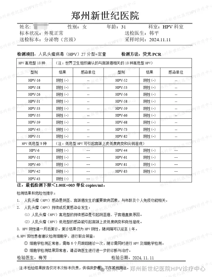 ★ 31名患者因低危型HPV感染导致生殖器尖锐湿疣,经综合排毒治疗后,尖锐湿疣治疗康复,HPV检测均已转阴。