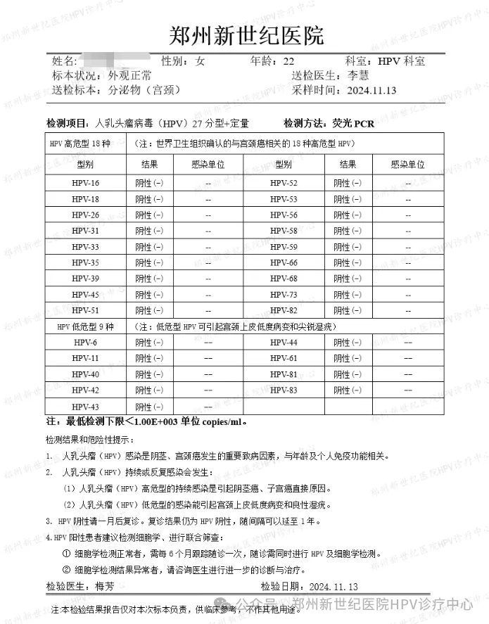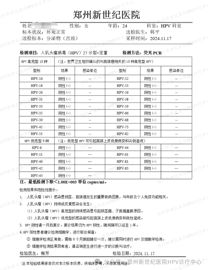 ★ 24名患者单纯高危型HPV感染,通过针对性的排毒杀毒治疗,检测HPV均已转阴。