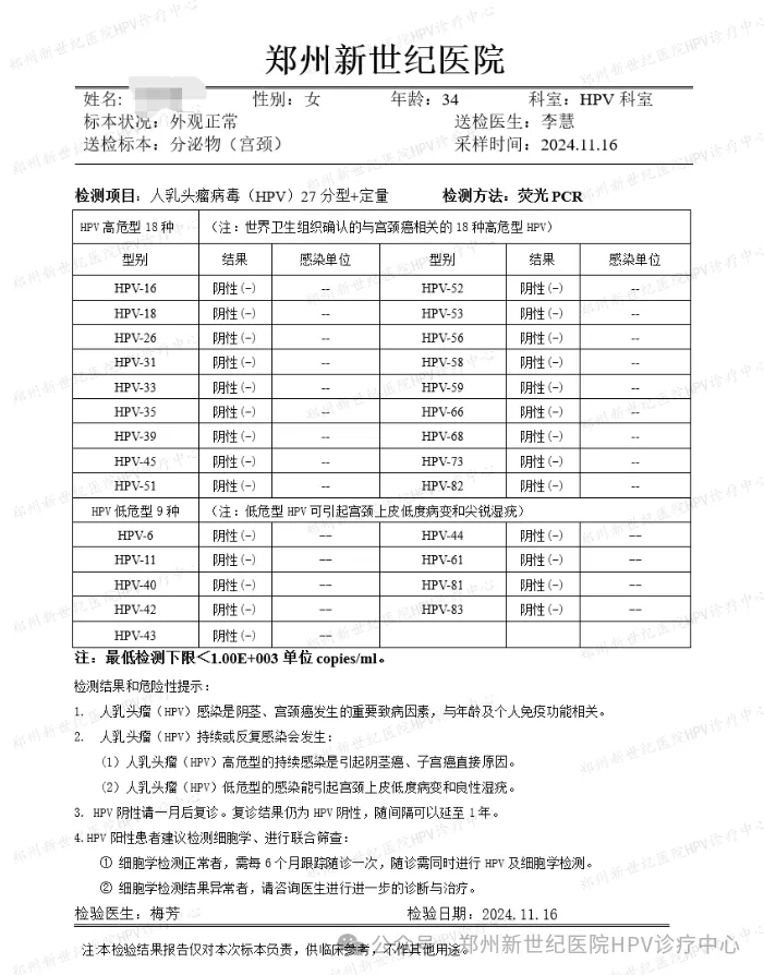 ★ 32名患者宫颈慢性炎症合并高危型HPV感染,经针对性治疗后,检测HPV已成功转阴。