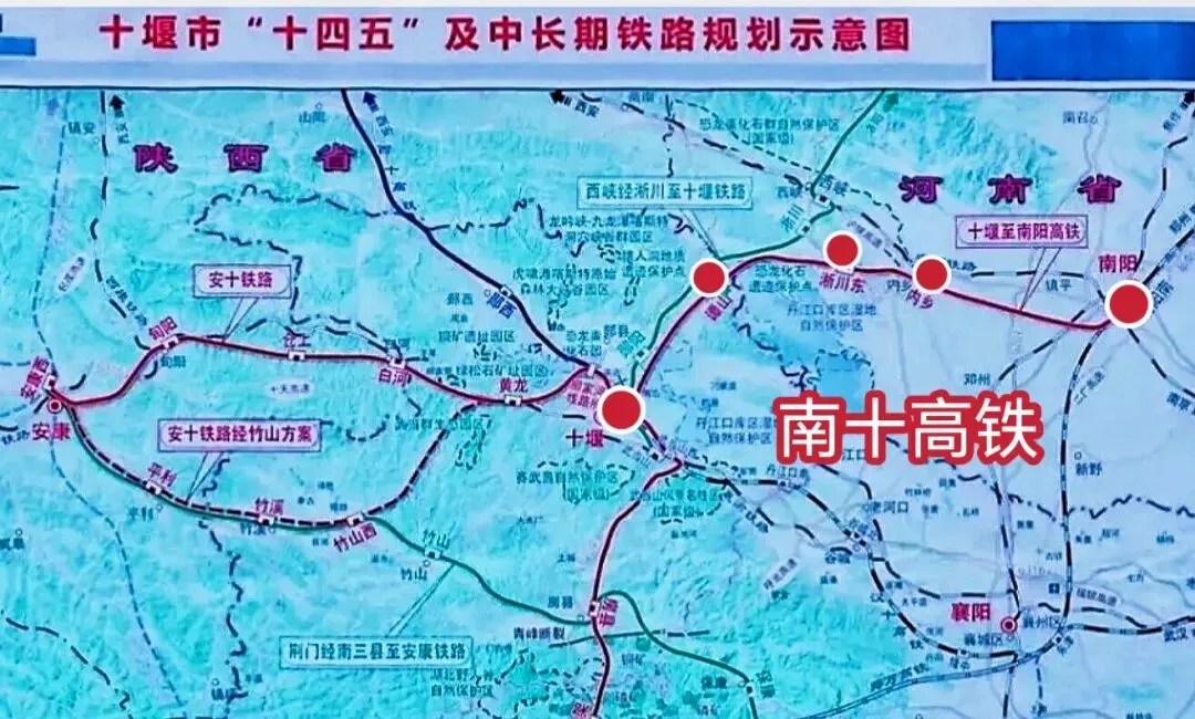 根据前期规划研究成果,南十高铁由南阳东站引出后,将经过镇平、内乡、淅川、郧阳区等地至十堰。目前,鄂豫两省正在共同争取将南十高铁纳入国家中长期铁路规划和“十五五”规划,并实现开工建设。