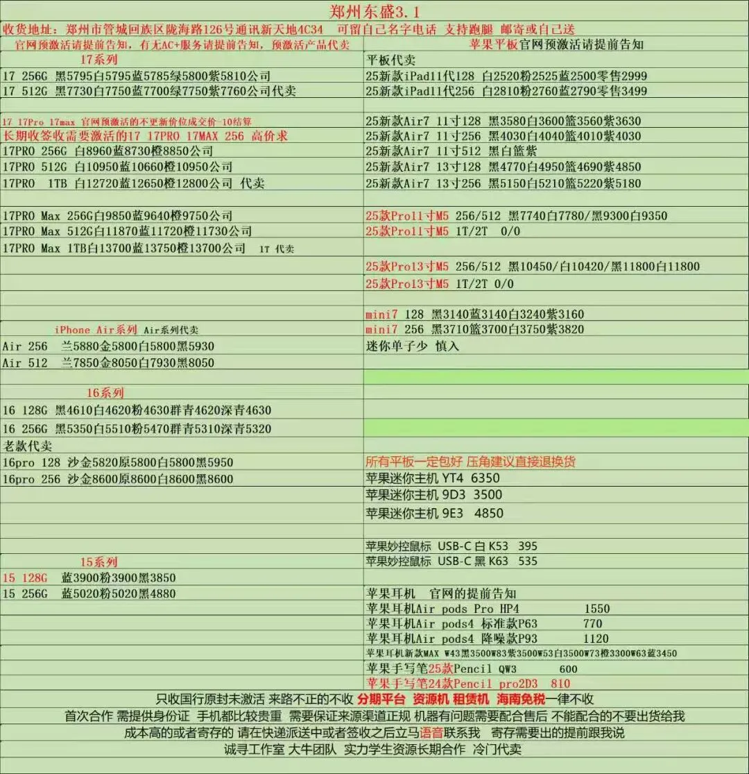 >郑州通讯新天地东盛3.1行情