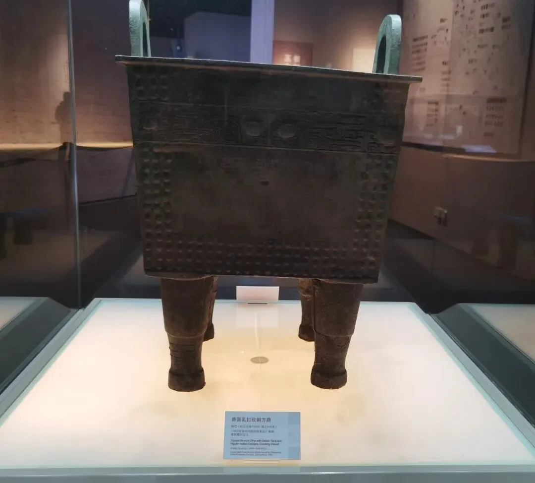 1.兽面乳钉纹铜方鼎,商代,在二层创世王都展厅。