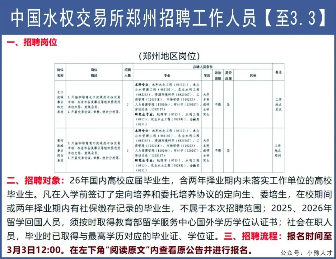 >中国水权交易所郑州招聘工作人员【至3.3】
