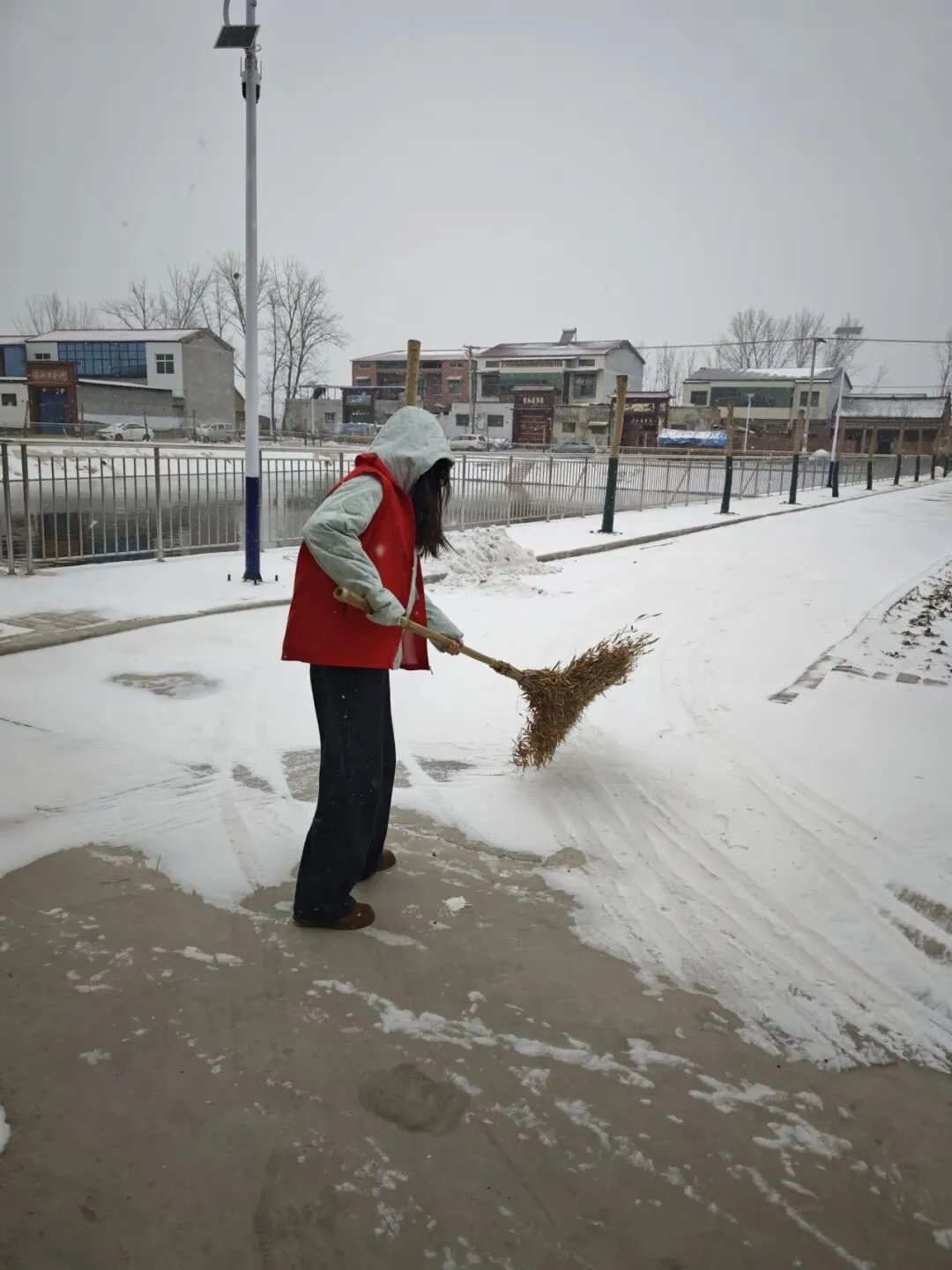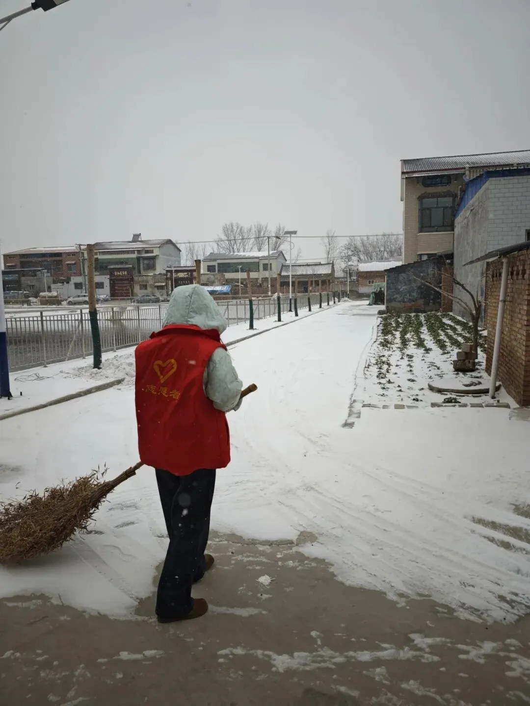 三个多小时奋战后,全村主干道、孤寡老人庭院及村口路段尽数清理完毕。望着村民安全通行的身影与阳光映照下的干净村道,她心中满是成就感。
