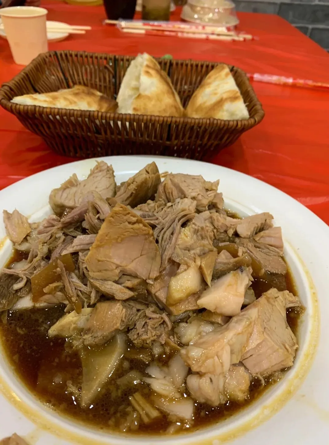 在芮城,我可算是好好体验了一把这里的“慢生活”,还吃了一场超满足的“碳水盛宴”。第一晚,在巷子里找了家小店,尝了地道的“芮城特色卤肉胡卜”和石子饼烧。那胡卜就是死面饼丝烩上卤肉,没啥精致的卖相,可满满的都是粗粝的烟火气,吃一口下去,初春晚上的寒气瞬间就没了。第二天早上,农贸市场早餐摊的“泡泡糕”和现磨豆浆,又把我的胃填得满满的,暖乎乎的。泡泡糕是油炸的红糖豆沙面食,咬一口,那叫一个甜香四溢。第三天早上,逛早市的时候买了特产“芮城麻片”,回去路上吃了一口,酥脆得直掉渣,这味道太纯正太惊艳了,回来后我一直惦记着,还买了好多分享给同事呢。除了美食,这儿的生活节奏也太让人喜欢了。住在县城的快捷酒店里,晚上安静得只能偶尔听到几声犬吠。走在街上,能看到当地老人晒太阳、卖春笋的平常日子,感觉时间都慢下来了。