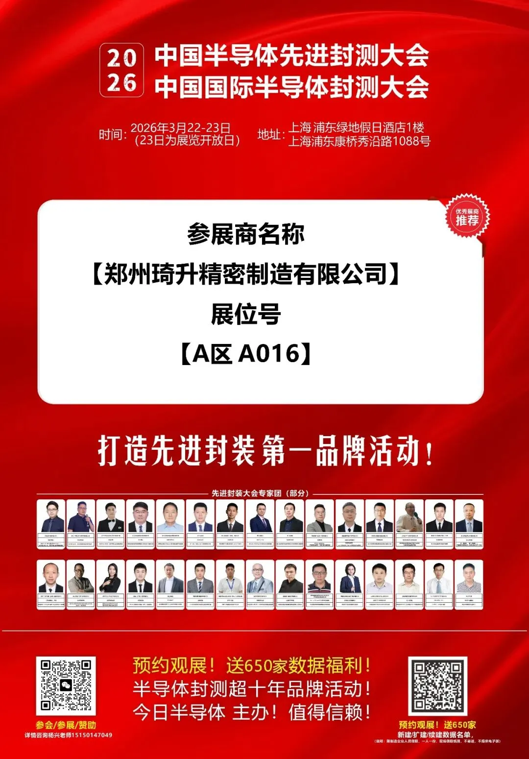 郑州琦升精密制造有限公司 邀您参加,2026中国半导体先进封装测试大会,3月23日上海!【欢迎莅临,琦升精密制造 展位号 A016】