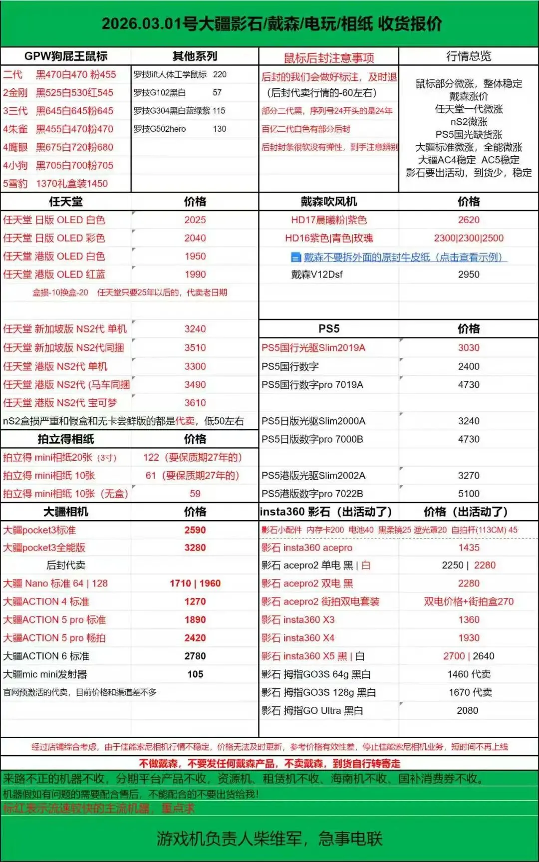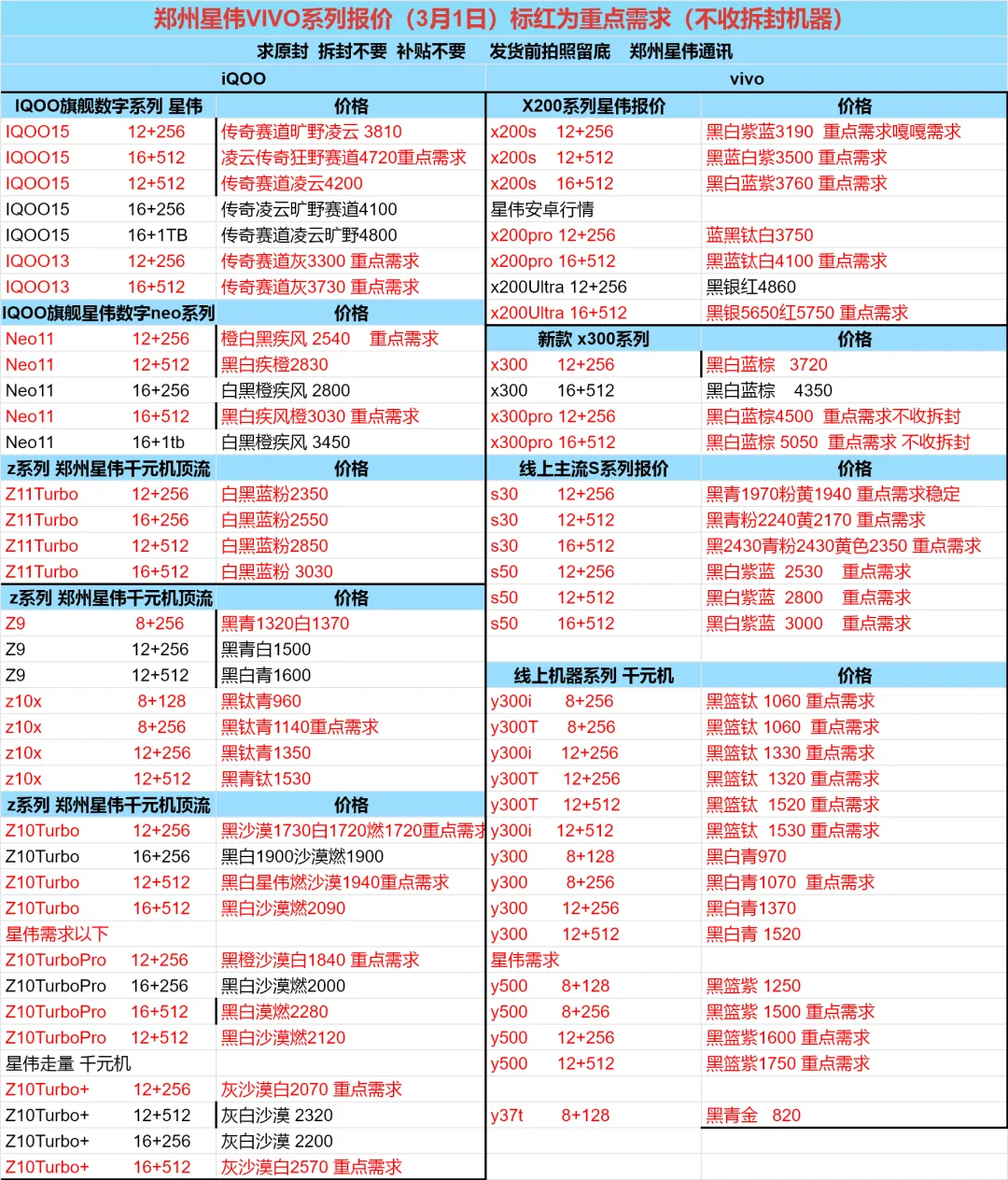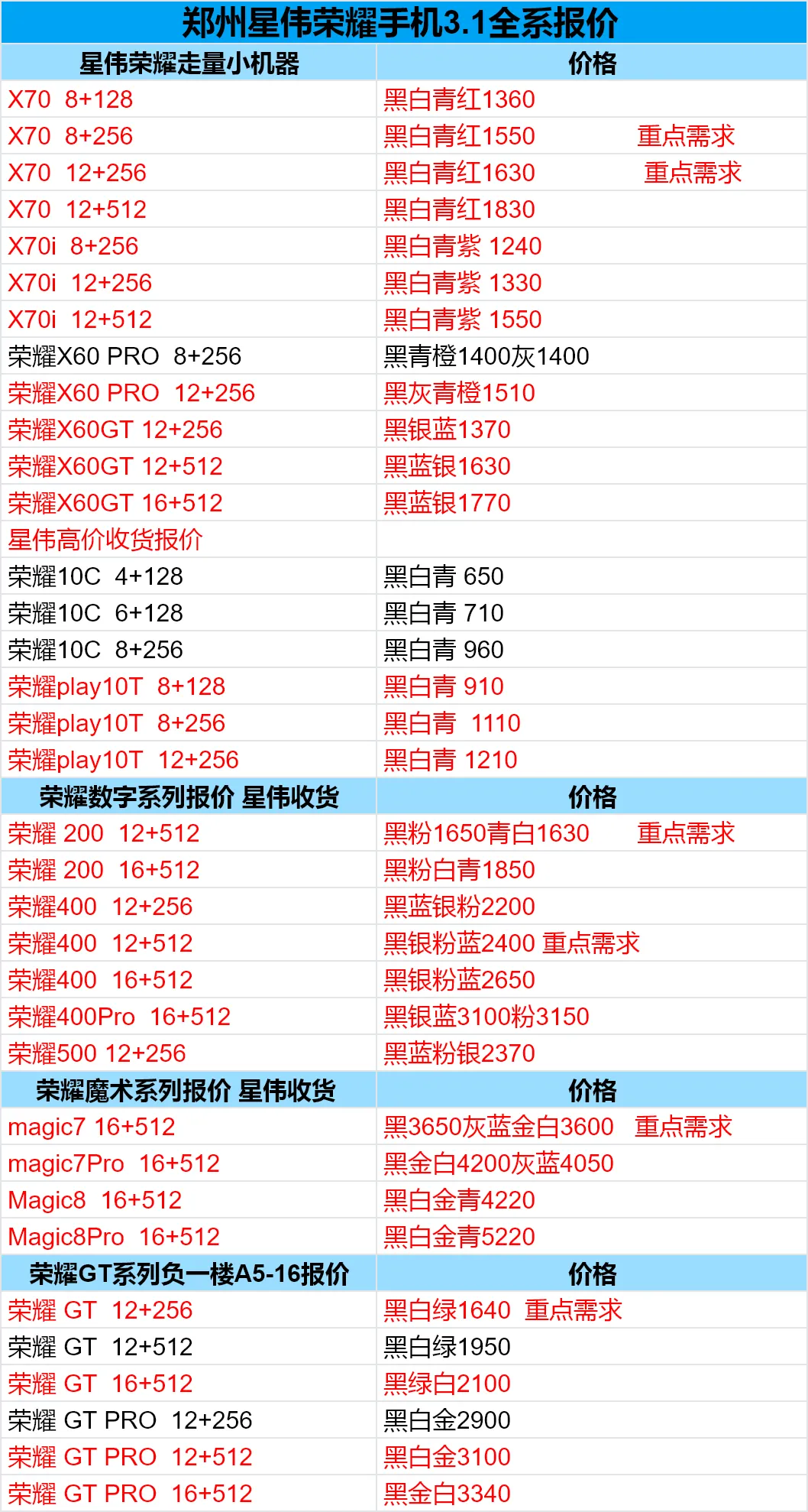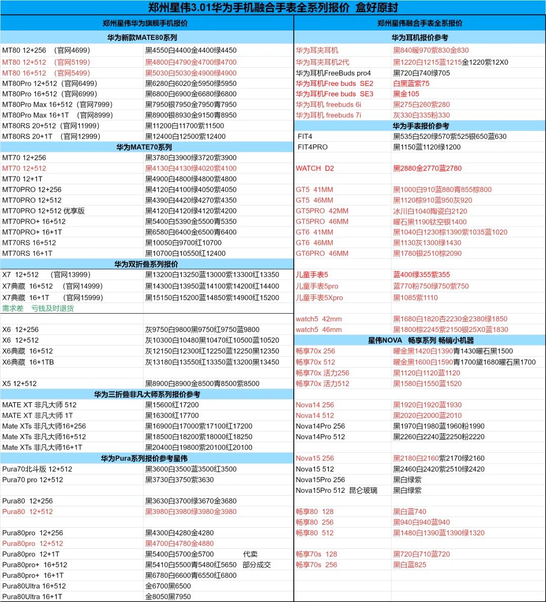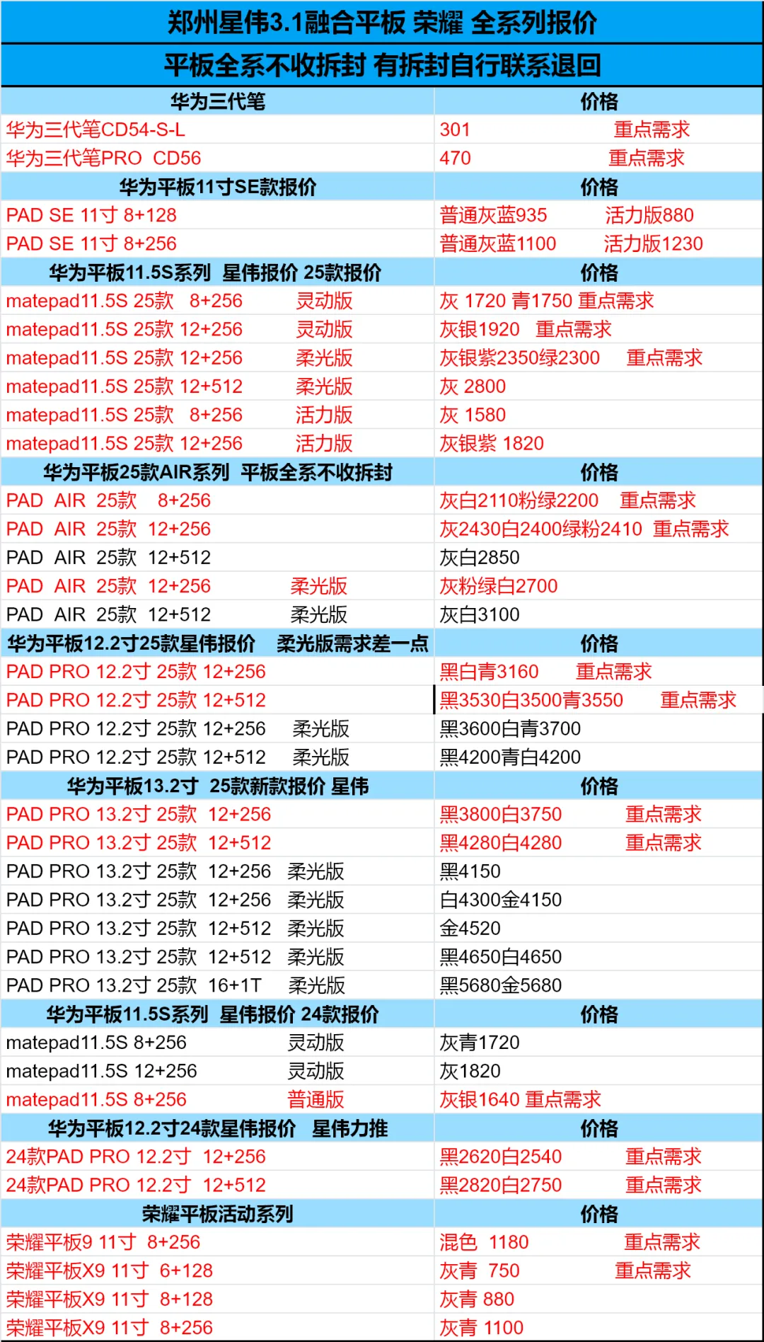 郑州轮聚通讯 2026年3.1日数码报价更新