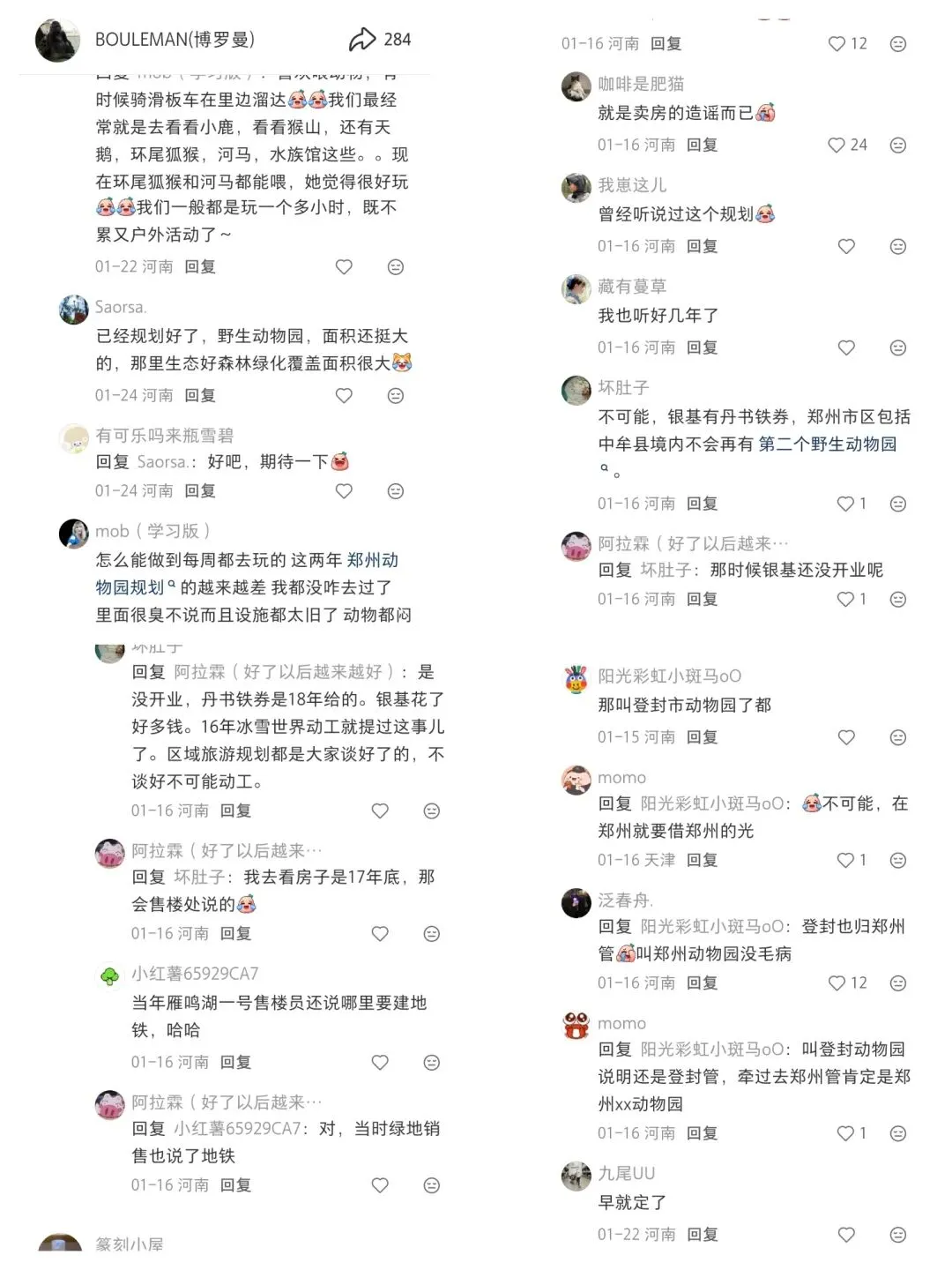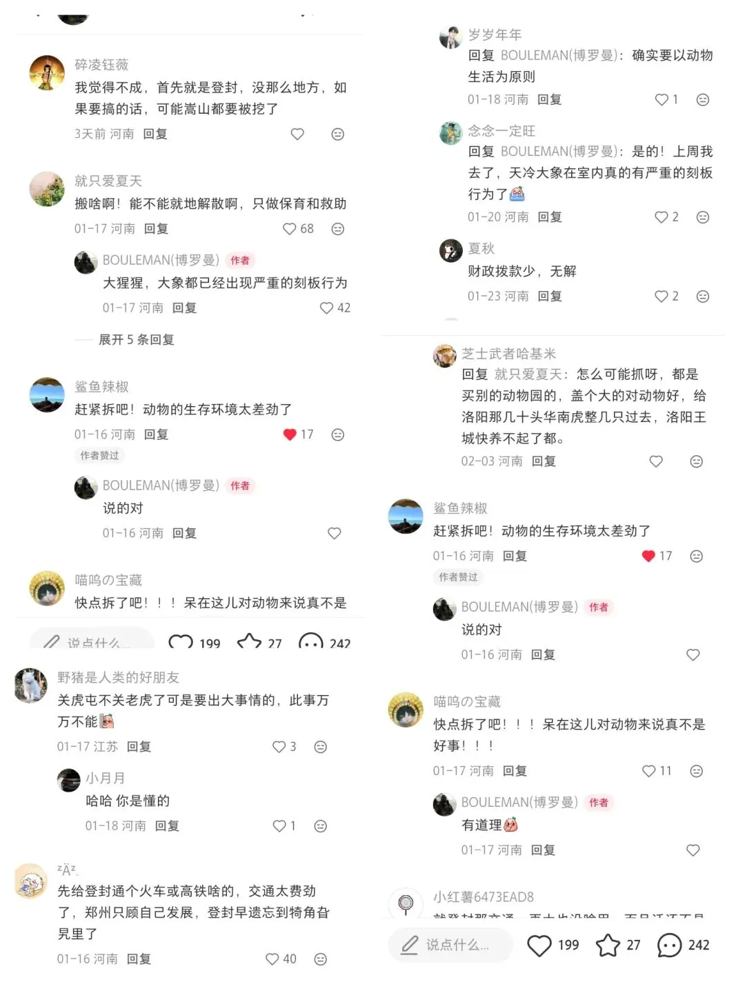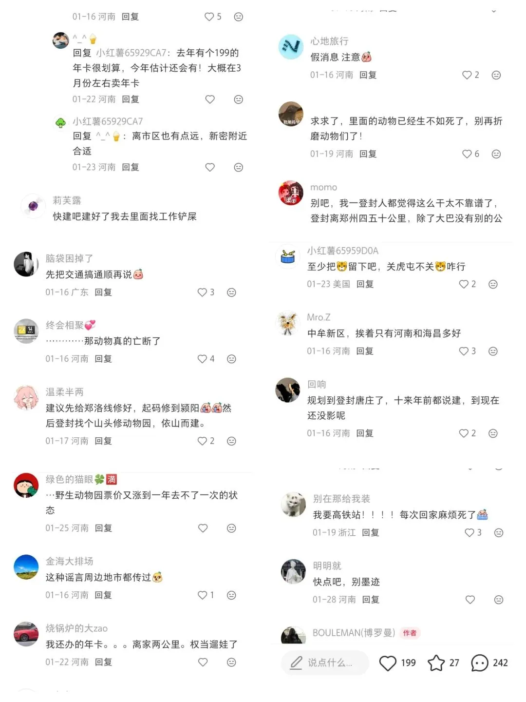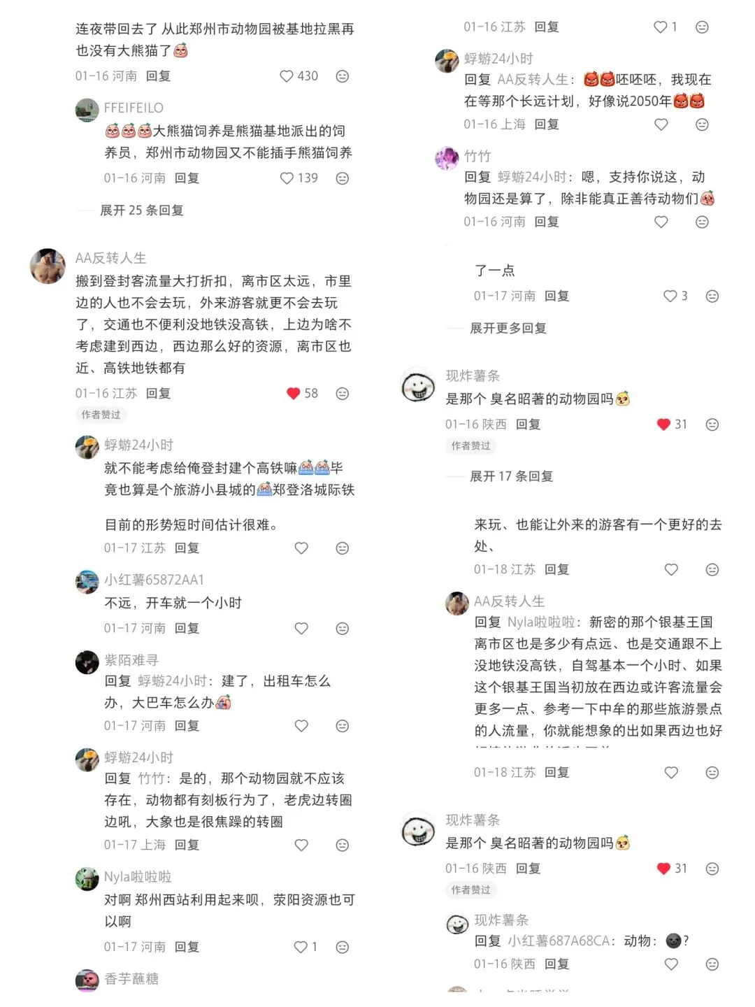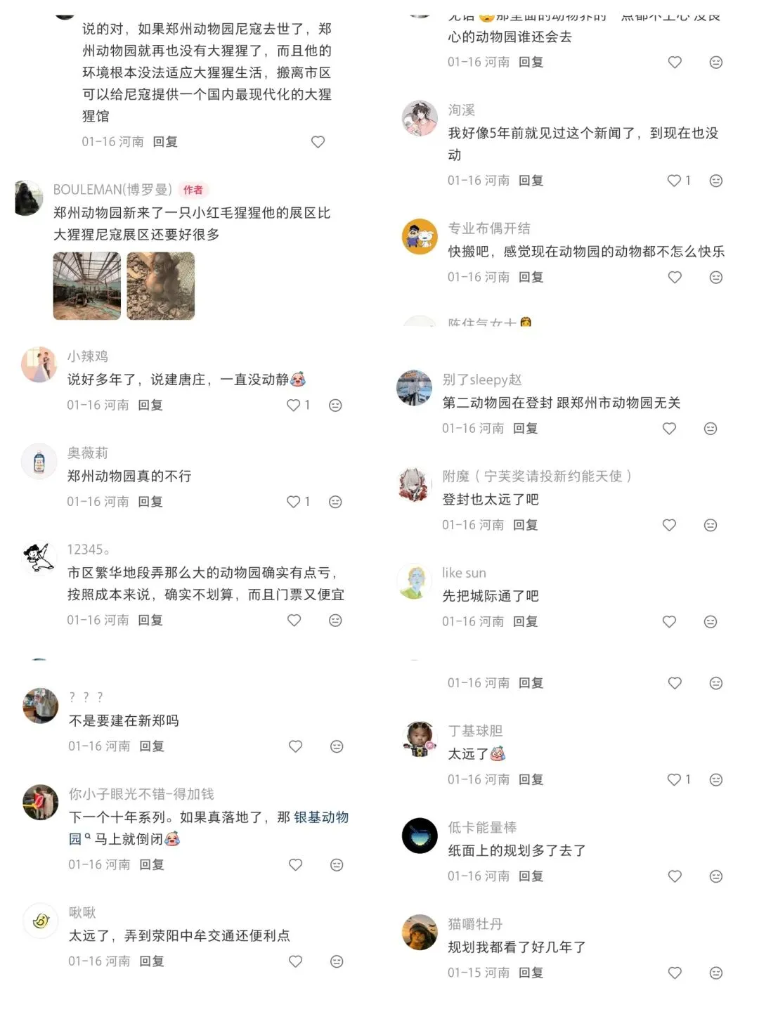这个是我小红书里的作品,观看人数居然超过了竟然有39383人,没想到我这个作品大家都很支持。这是我在高德地图上截屏郑州市动物园整个鸟瞰图,整个面积非常小,如果新建到登封这样可以相当于28个郑州动物园和6个广州长隆野生动物世界让你一天都逛不完!!而我这些留言里面居然有这么多回复我也只是想希望郑州市动物园能够早点搬迁,我也想支持我这个作品想让郑州动物园好好看看注重动物福利,我也发现到郑州动物园的设施都实在太老了,儿童游乐场也被拆除掉了,灵长动物区的山魈也没了!!以上是大猩猩尼寇室内环境的照片,郑州动物园还是在竭尽全力照顾尼寇,可是,我应该怎么说,地板上都是水泥地,而且没有草地和土地的垫材,郑州动物园都没有给尼寇弄动物福利。郑州新动物园·现代化大猩猩展区方案