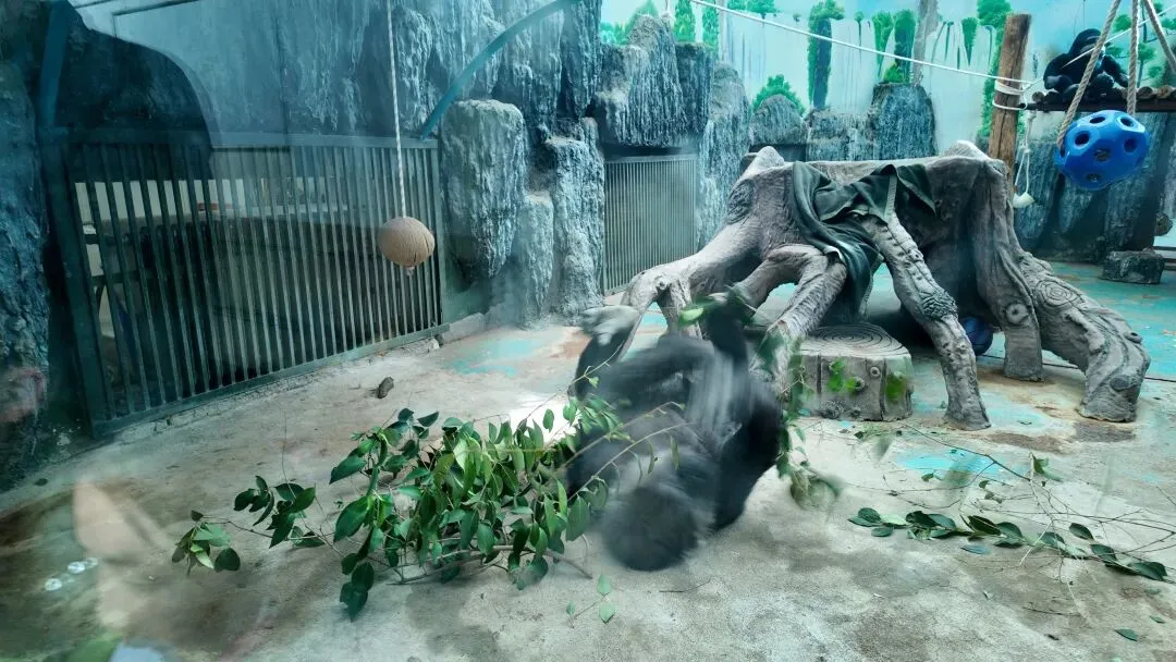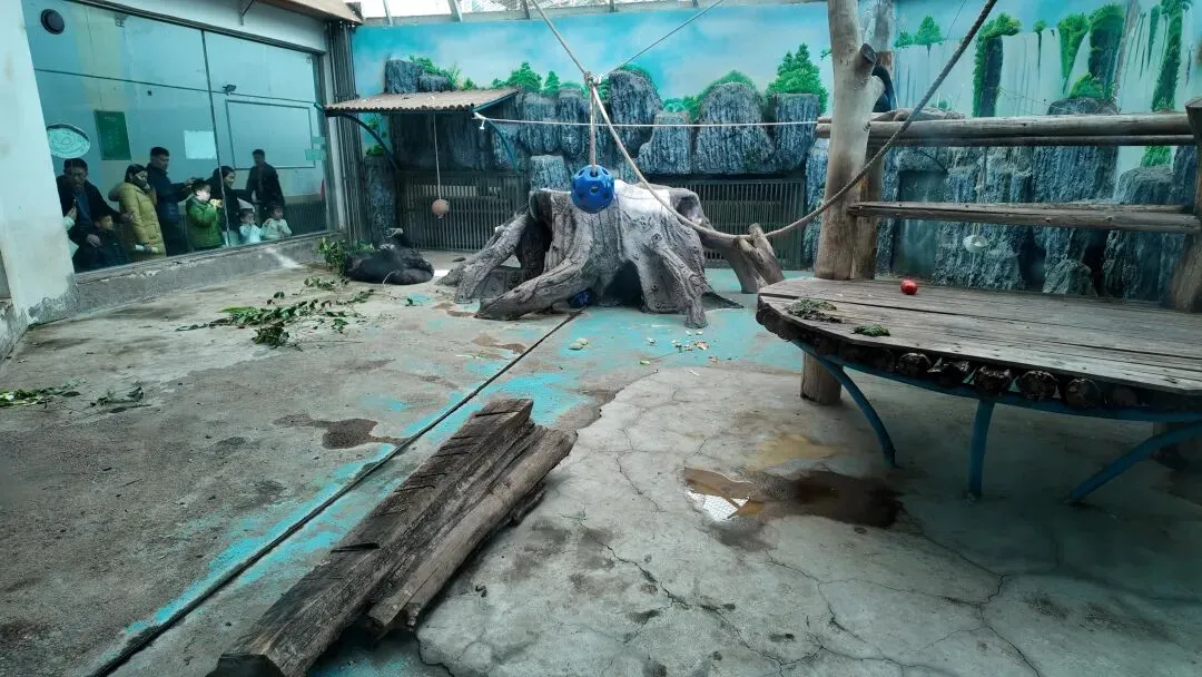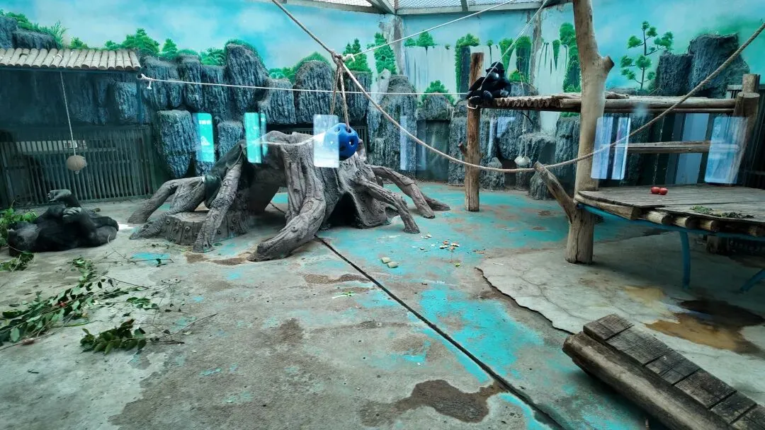 采用自然丰容:食物藏于树洞、高处、土中,模拟野外觅食;设绳索、粗枝、软草巢区,满足行为需求。