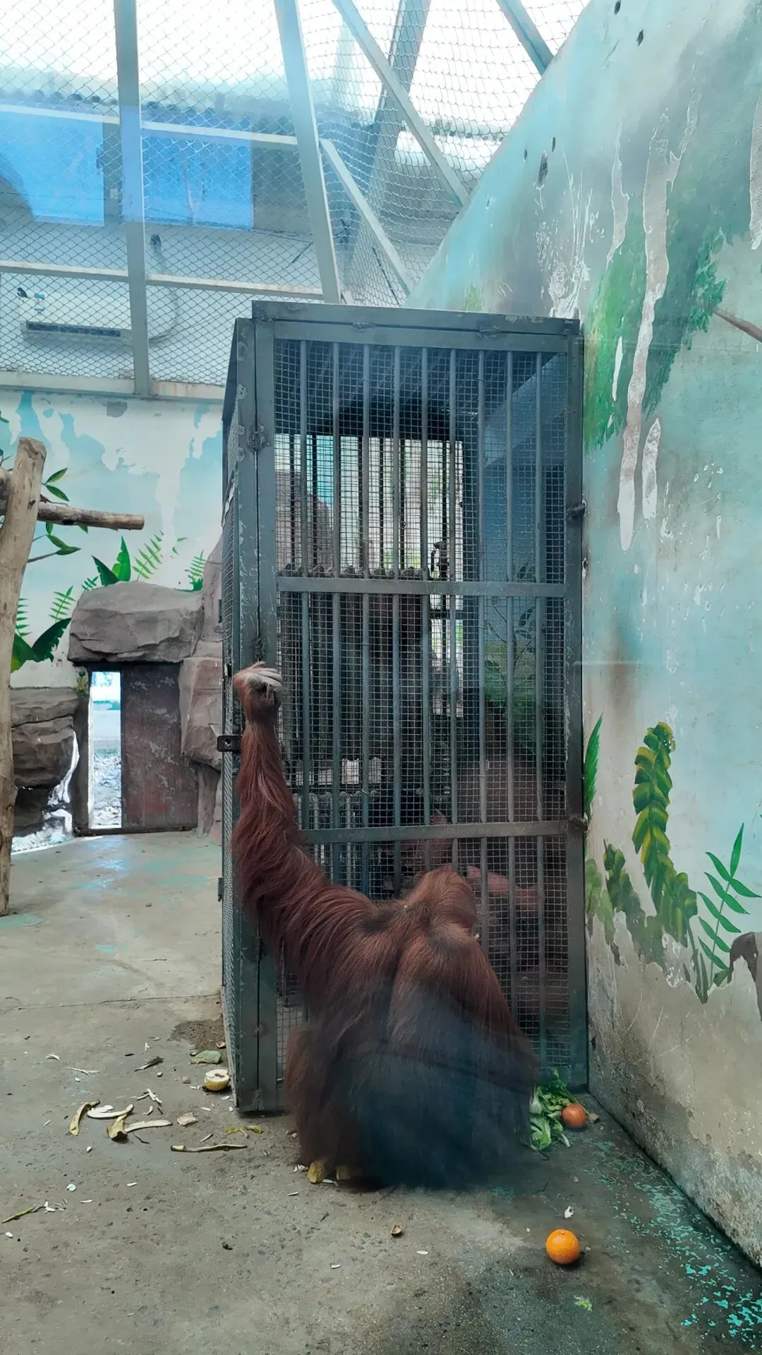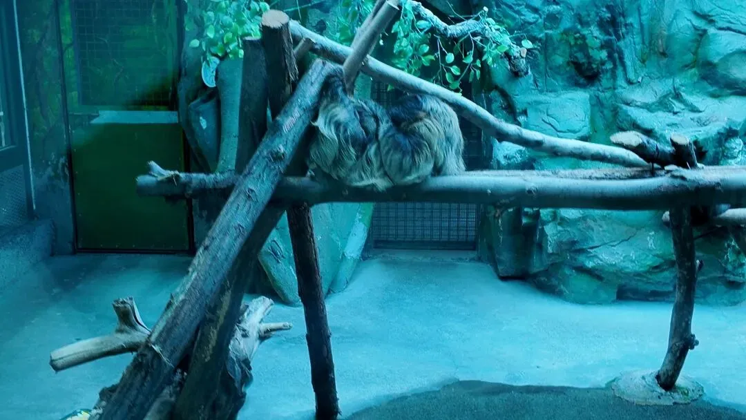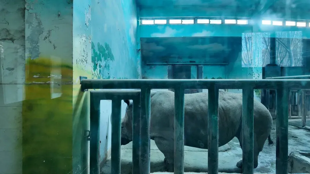 尼寇隔壁邻居雄性苏门答腊猩猩“乐乐”,他的展区如此很小,攀爬设施也不够,动物的福利非常不好,而乐乐就有一个毛病喜欢用铁钉拆玻璃墙角的螺丝钉,当时这拆东西的声音非常大把整个玻璃都给震动了,郑州动物园新时代猩猩主管饲养员白师傅看到这一现象就吵乐乐说:“再敢拆螺丝看我不收拾你!”白师傅又把他手上的铁钉没收了。部分调皮的游客还试图给动物看手机,这样动物很容易受到威胁或者挑衅,你很容易给动物伤眼睛,给动物看手机的行为就会让动物失去娱乐行为。这是郑州动物园的犀牛馆,当时是2010年从南非引进的一对南部白犀牛,这头是公的,去年我逛郑州动物园的时候问了一名饲养员说你们这里为什么少了一头犀牛?饲养员就说我们郑州动物园害死了一头雌性犀牛,饲养员就告诉我说这头展示的犀牛是雄性,这是2月11日我在室内场馆发现它一动不动,刚才还在睡觉,而他的室外环境非常小,犀牛打滚的泥土我觉得算得上优秀,犀牛室外场馆设施也是很少犀牛馆也是一言难尽犀牛也不够奔跑。大食蚁兽馆是2017年建成的,从南美引进5只,没有繁殖记录,以上拍的两只大食蚁兽严重出现刻板行为。二指树懒生活的环境很好,二指树懒就喜欢睡觉,很少才会下来活动,树懒是一种树栖动物,一般喜欢游泳,可是郑州动物园没能给树懒建成游泳池,树懒在地上活动的慢,树上也活动的慢,游泳游得快。郑州动物园总共3只树懒(2雌1雄)是2022年7月份从辽宁引进。