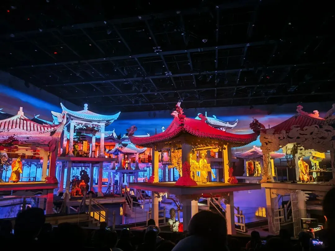 当然每个剧场是都需要排队的,我们从11点到达,到晚上20:30离开,一共就看了5个剧场 《幻城》《下沉岁月》《老院子》《唱吧跳吧》《薛怀义》。感觉时间不少,但是拍照,打卡,吃饭,排队,真的不够用。因为每个剧场至少排队1小时。但是很惊喜的是,这的餐厅真的不贵,一碗很好吃的面也就二十多,串串也就几块钱,饮料也是。这已经打败了百分之99的景区了,以河南的标准去卡全国,基本就出不了河南了。每个剧场都很好,唱吧跳吧几乎等同于,你去了一趟酒吧。歌好,演员也好。剧场外循环播放着付豪的《只有河南》歌词很好,作曲也很好,分享给你们。