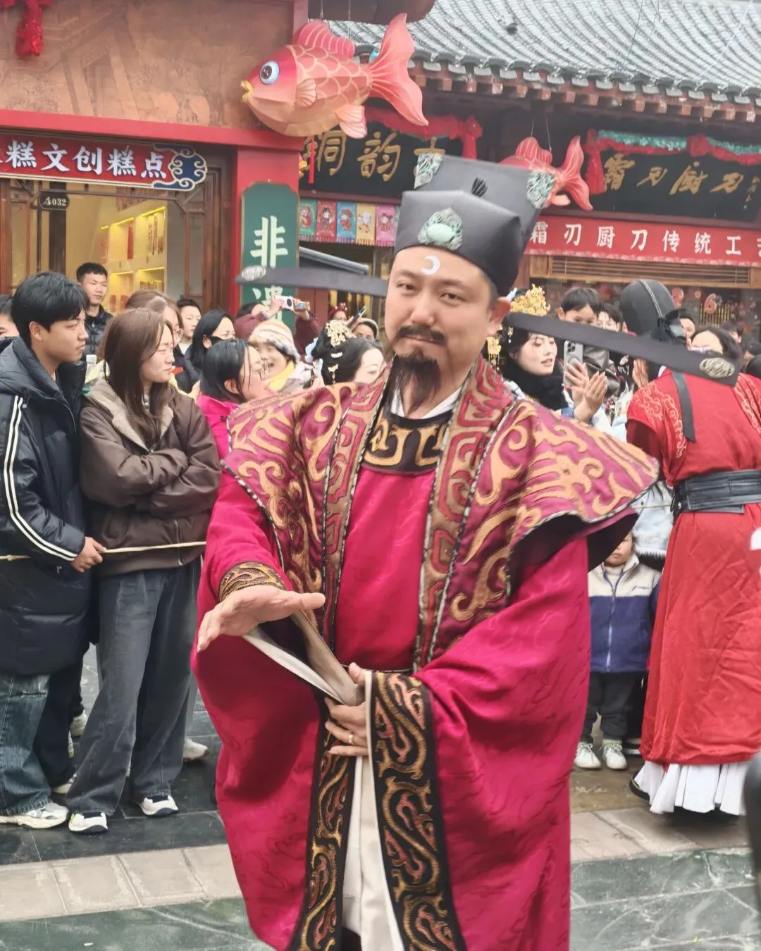嗯,景区服务中心可以存放行李,跟我们一样的大聪明很多。景区服务很好,让人安安稳稳看了一天。看完了最后的《薛怀义》我俩就拉着行李箱跑路了,前往第二站开封。来河南之前,问了一下惊喜,我说开封哪里好玩,她推荐的清明上河园和万岁山。嗯,我一直以为万岁山是个山,原谅我的无知。不爱爬山就定的园子,鉴于上次在洛阳拍照的经历欠佳,就在开封把旅拍也定了,我真的是个大聪明啊,简直太棒了。行程不多,但是每天也需要9点出门,每天都是在住宿的酒店或者民宿楼下吃的早点。好吃不贵,每个人早餐10块钱就可以吃得很饱。当然酒店也不贵,错峰出行,一切都很值。早上9点半去做妆造,店里的小姐姐很有耐心,也很幽默,老板人也很帅,就是说话的时候性缩力拉满。果然山河四省的人都适合做哑巴新娘,我也不例外。穿着好看的衣服,做着美美的妆造就出发了,园子里都是汉代,唐代,明代的小姐姐和小哥哥们,完全不会又违和感。让你觉得,可能当年也是这样,热闹,招摇又亲切。景区里很多的NPC巡游,会热情的跟游客打招呼,没有一丝的不耐烦。还有很多可以换交子的游戏。玩游戏的NPC和主持们都身着汉服,颜值和口才一样在线。整个场子热热闹闹的,诙谐幽默的话术让大家排队,不闹的时候,你产生不了一点反感。同样,景区里的东西真的是物美价廉,奶茶最贵十几块钱,小吃和主食都是5-15,家里吃路边摊都比这贵!主要是味道一点不差。更有199的旅拍套餐,拍了99张的出片,这价格,让人是一叹一叹又一叹。景区里的儿童区和游乐区略过了,人最多的排队的地方也都没去。 就这从11点逛到了17点,我俩就拆妆造去民宿了 。头天定的是个老宅子,今天没有房间了,就换到了万岁山下的一家,嗯真的就是对过,能到清清楚楚听到对面万岁山歌手唱歌的声音。我说怎么看不到山?司机师傅说,没山啊,就是一个武侠基地,因为有协议所以宣传做的很好,白天路口都是封禁的不让走,人太多。前台说,歌要唱到晚上23点多,我俩就去了民谣清吧,嗯,感受了一把全场王公子买单的快感。这一天没什么可唠的,因为路程遥远,车开了2个多小时到了,不太适合我俩,大型商超也不知道买点啥,后来买了点糖果搁兜里了,说实在的谁也不会买一堆洗衣液,点心和面膜回家吧,大老远的。不过旁边的餐厅十三碗不错,是一家非遗老店,有豫剧表演。服务员也会主动跟你讲美团点就可以,优惠的多。米酒也很好喝,像在安徽喝的一样,甜甜的,但是很容易上头。喝完果断带了一桶,就是许昌的纪念了。原本打算去趟景区的,电话没打通,我俩就直接去洛阳了。“崤函帝宅,河洛王国”,洛阳在历史上相当长的时期内,曾经是中国政治、经济、文化的中心,亦是道路四通八达的交通枢纽。西周初期,在中国建立了第一个大公路网,洛阳是其中心,驰道驿路,其直如矢,无远不达;隋大业元年(公元605年),隋炀帝在洛阳建东都,下令开凿大运河,至此形成了以洛阳为中心,向东北、东南辐射总长达2000多公里的南北水运网;东汉时期以洛阳为起点的“丝绸之路”,可以直驰地中海东岸,明驼宛马,络绎不绝。