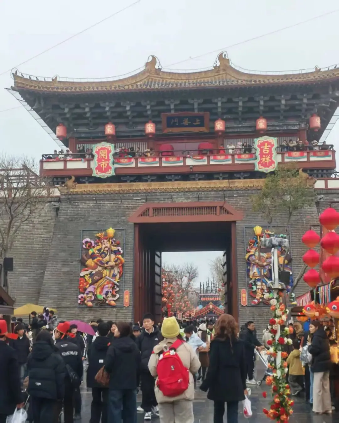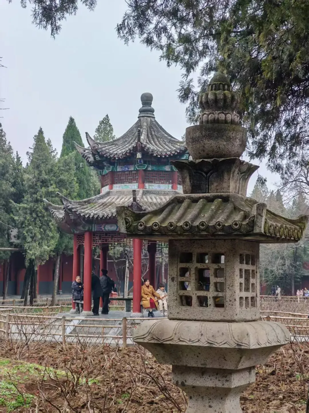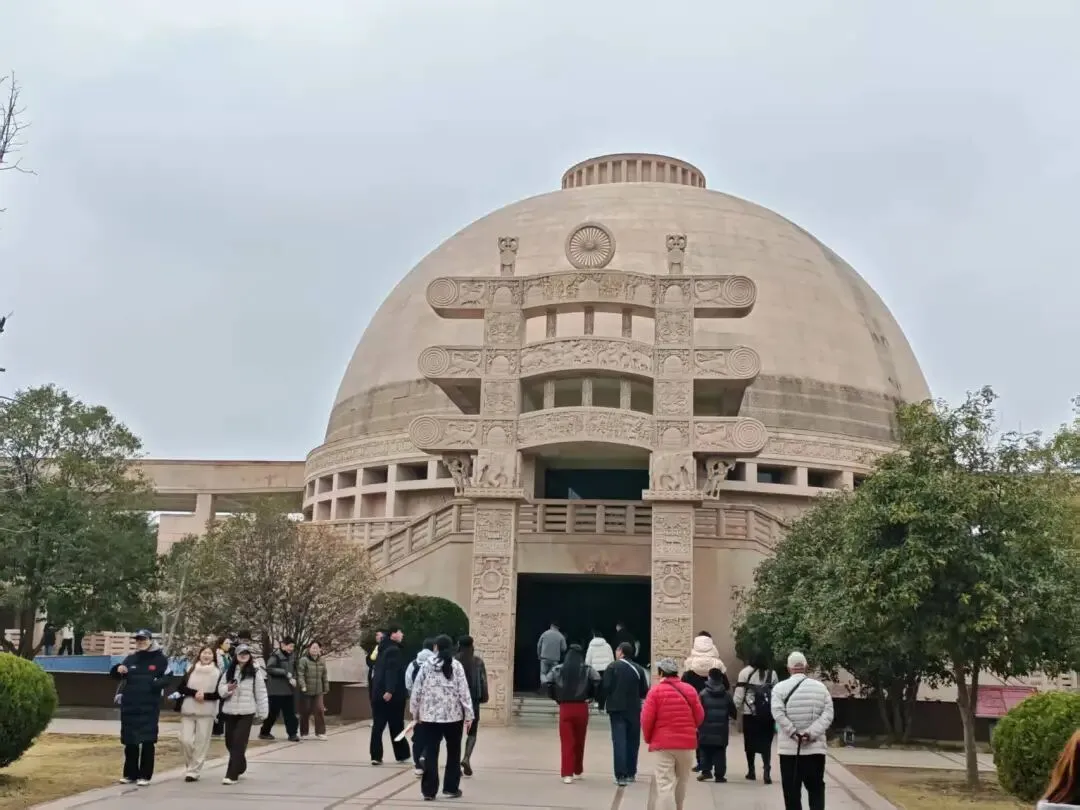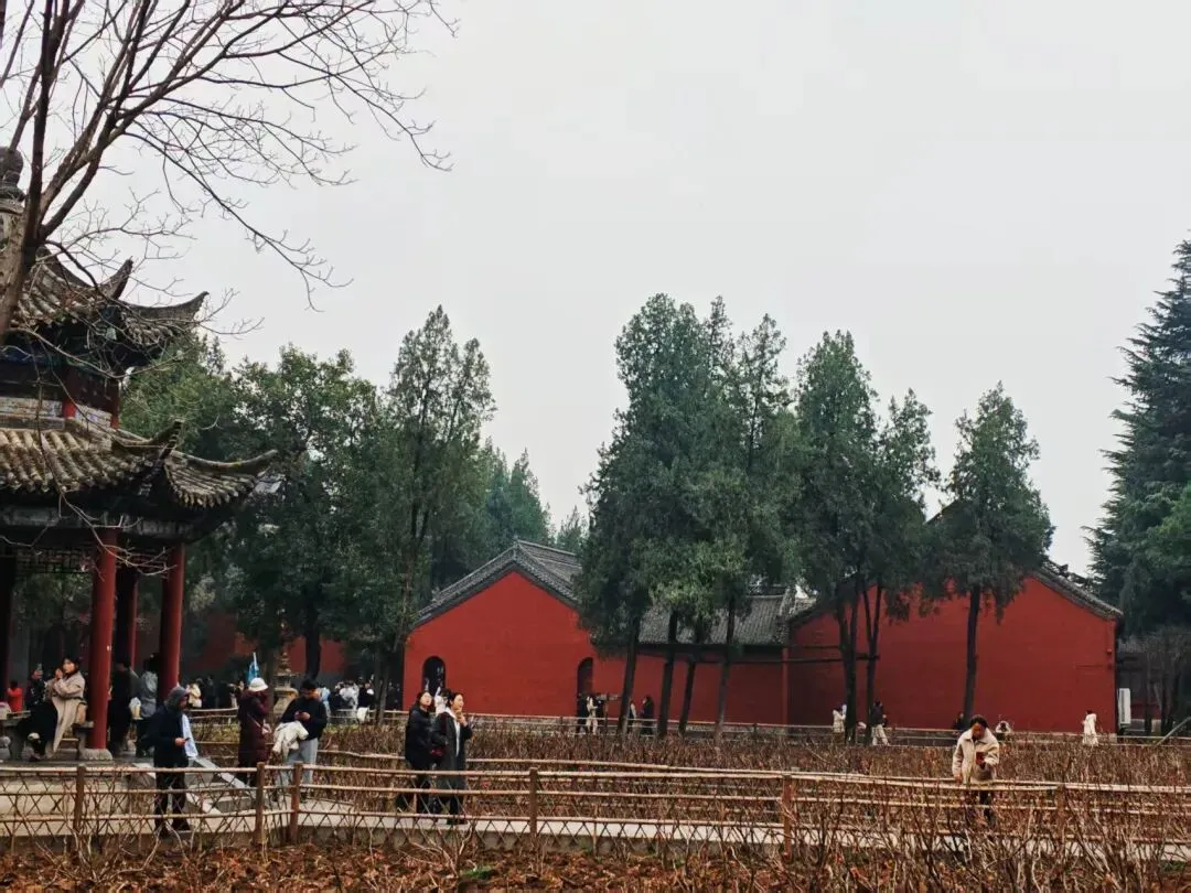 最后一天是唯一排了两个景点的行程。早上9点15出发去白马寺,可能是因为春节的原因,都得到外围坐摆渡车过去,找了一个拼团的导游,说实话,听得不多,也记不住。记住的就是,其实玄奘是偷渡去取经的,根本不是官方授意。啊哈哈哈,这是野史还是正史,有没有人来科普一下。白马寺的香火依旧鼎盛,每个殿都需要排队,河南的春天来得很早,殿外桃花早早就开了,美得很。导游带着把咱们国家的主殿都逛完了就自由行了,我上次还奇怪,旅拍咋没带后面的殿里,原来后面的殿都是后修的,有缅甸的,泰国的和印度的。金碧辉煌的很有尔康当年被拐的风格。说是他们出钱咱们拨地人自己修的。感觉没什么人来修缮的样子,很多地方都脱落了,游客也都是过去打个卡,证明自己来过逛完了,等出来之后想起来,导游说白马寺后面有个尼姑庵,不要门票,忘记了。直接打车去三旦,可惜了,这家店是卖完就关门的,司机带我们去了另外唯一一家开着门的店,吃完饭,继续打车。嗯,感觉起步就停了
