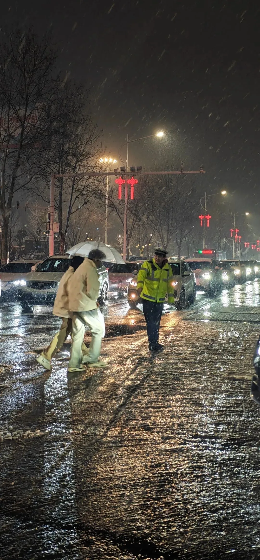 至3月1日晚22时,受持续降雪影响,市区除部分路段出现少量积水,道路整体通行状况顺畅良好,由于夜间最低气温将降至0℃,路面易出现结冰现象。针对这一情况,郑州交警提前部署各项应对举措,执勤警力重点驻守高架桥梁、隧道匝道、主次干道等易结冰湿滑路段,以及医院、车站、商圈等人员车流密集区域,通过警灯警示、手势喊话等方式,提醒过往车辆减速慢行。警力部署采取定点值守与动态巡逻相结合,开展疏堵保畅、安全警示和应急救援工作,最大限度消除交通安全隐患,保障道路安全、畅通。同时,通过官方微信、微博、抖音等新媒体平台,以及路面诱导屏、交通广播等渠道,实时发布路况信息、天气预警和安全提示,引导群众合理规划出行路线。