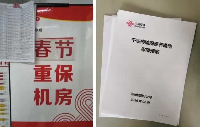 郑州联通讯(网络运营中心:陆佳丽)为确保春节期间通信网络安全、稳定、畅通,郑州联通网络运营中心长途传输机房提前谋划、周密部署、精准施策,全面启动核心机房重要通信保障工作,维护人员以高度的责任感、使命感,全力以赴筑牢通信保障防线。结合春节期间的通信业务需求,制定《核心机房重要通信保障实施方案》,明确“零中断、零事故、零差错”的保障目标。