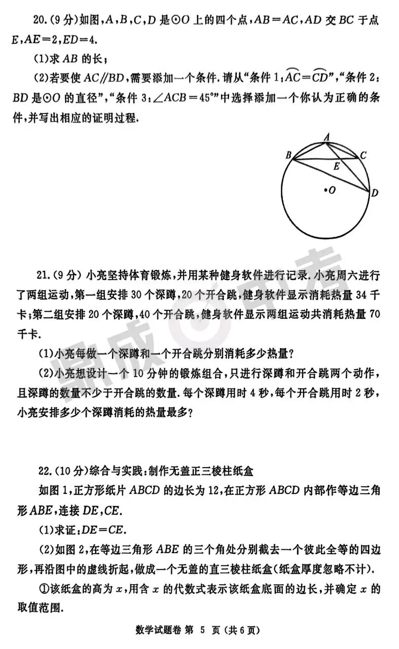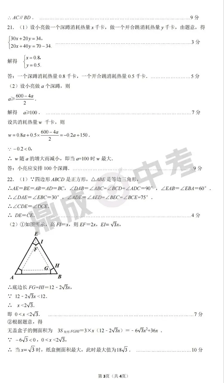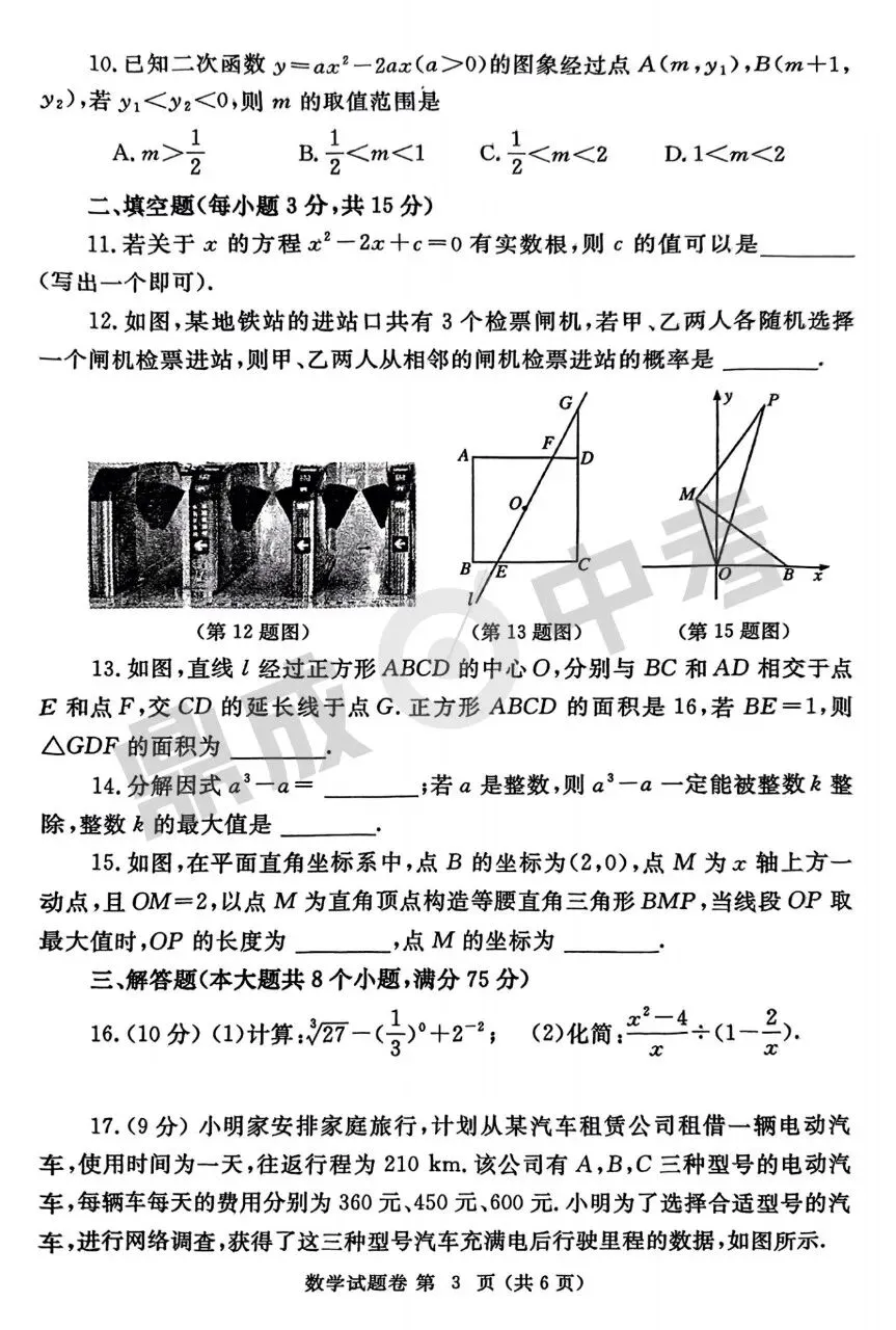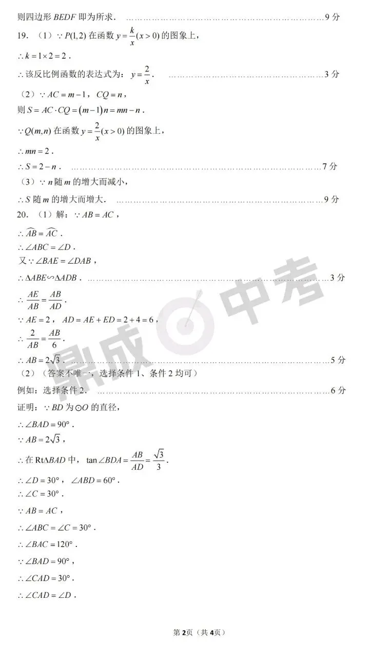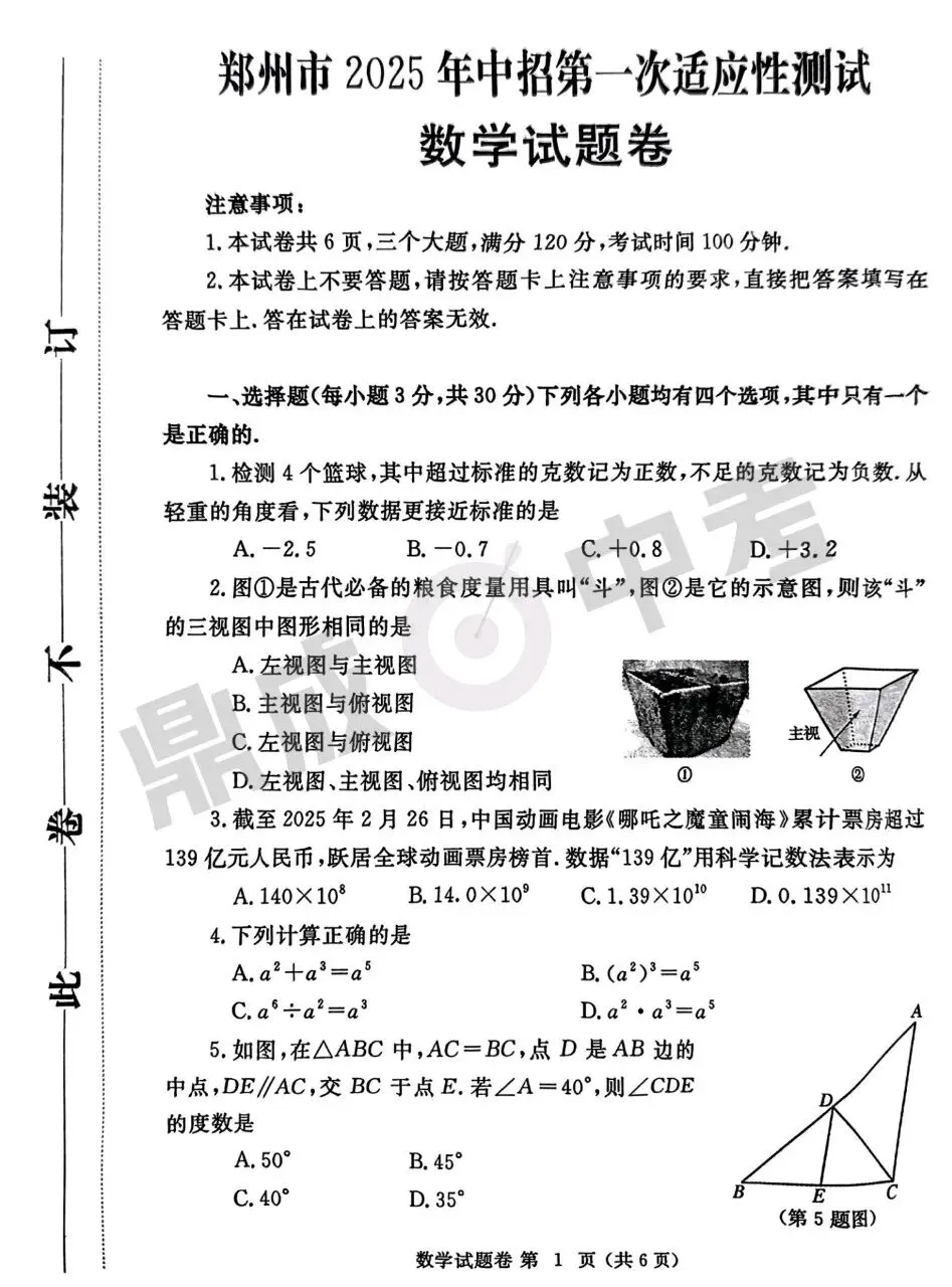 >郑州市2025年中招一模-数学+答案