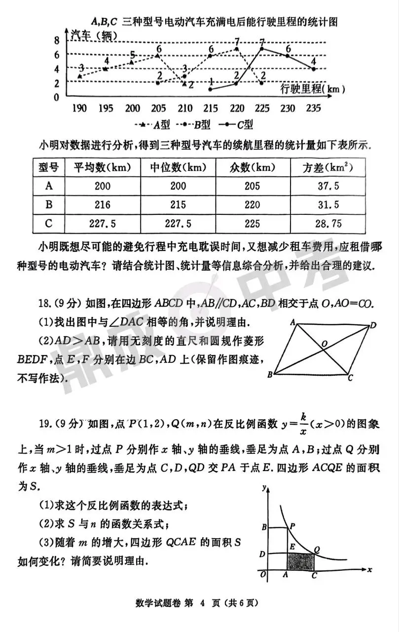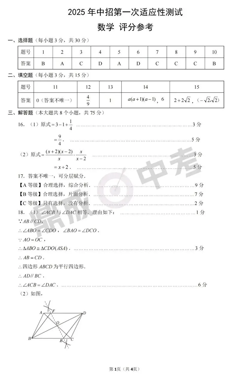 郑州市2025年中招一模-数学+答案