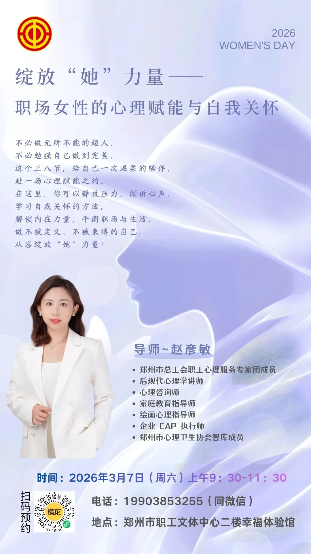 郑州市总工会@亲爱的妳 | 三月,因妳而美——专属女职工的心灵SPA沙龙报名通道已开启