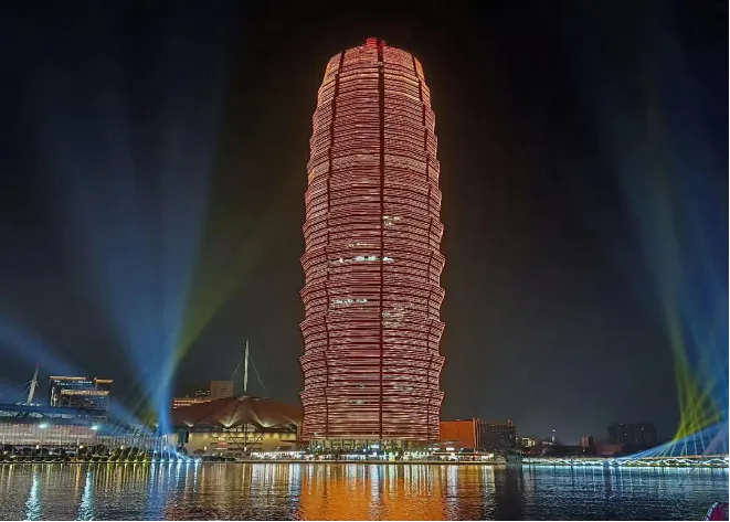 在现代建筑方面,玉米楼是郑州的地标性建筑之一。它正式名称为千玺广场,位于郑东新区CBD核心区,高约280米。其设计灵感源自嵩岳寺塔,因晚上的黄色灯光形似玉米而得名。楼内有办公区、酒店和观光层,周边的如意湖景色优美,还有数控水景表演。
