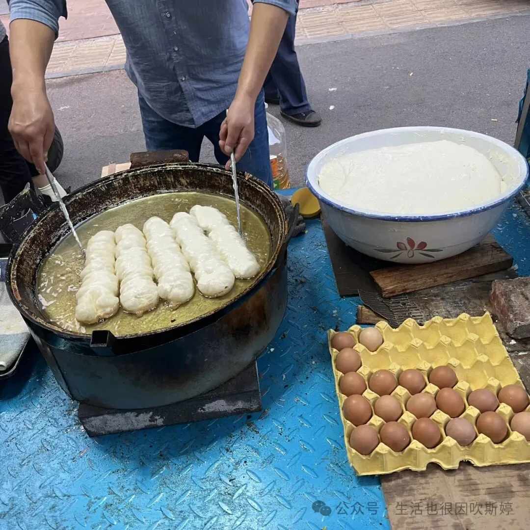 ③吃到了很久没吃到的杠子油条。印象中,还是小学的时候,在酒精厂市场会有卖这个形式的油馍头,后来开始流行长条形的油馍头了,就再也没吃到过了。